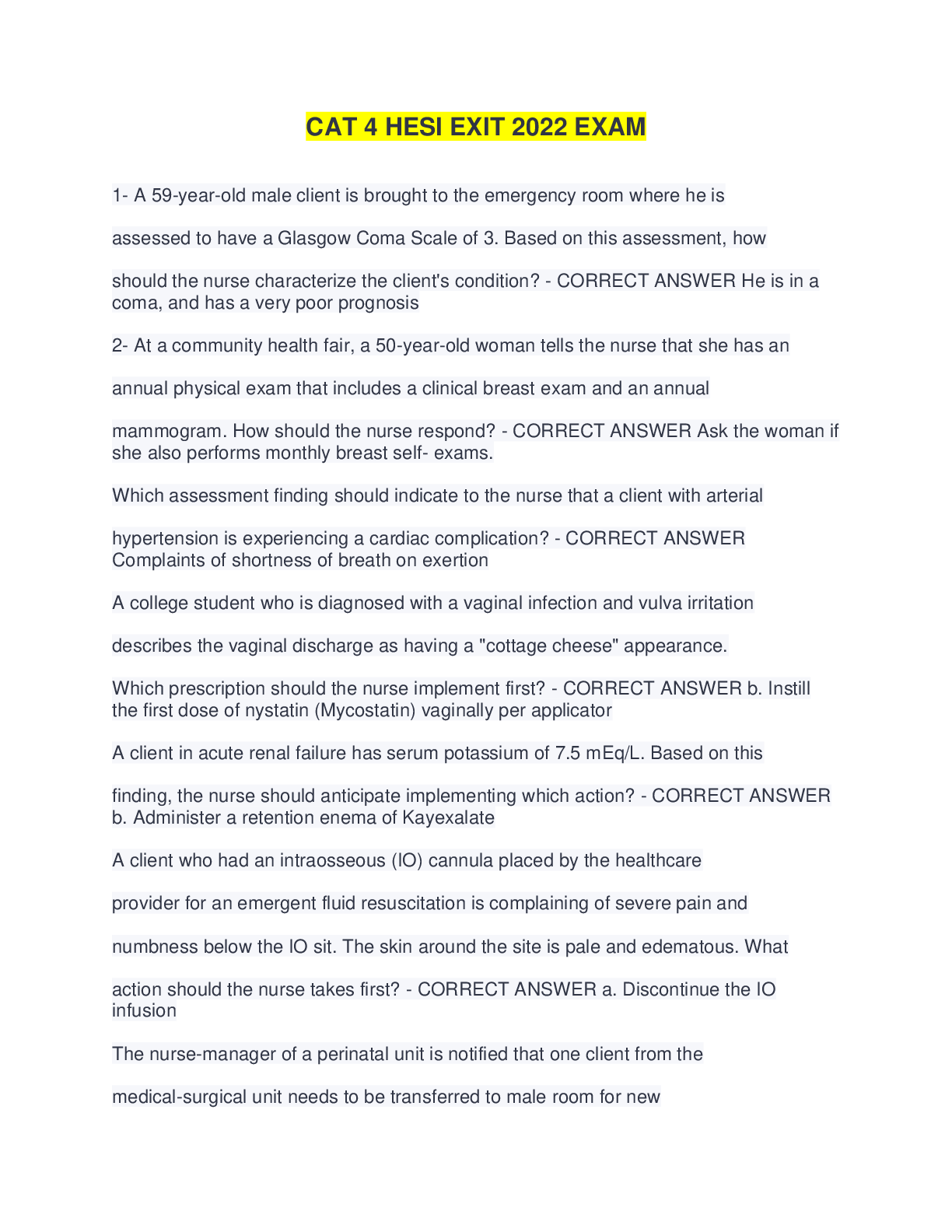 Education > EXAM > CAT EXAM 1-HESI EXIT 2022 (All)