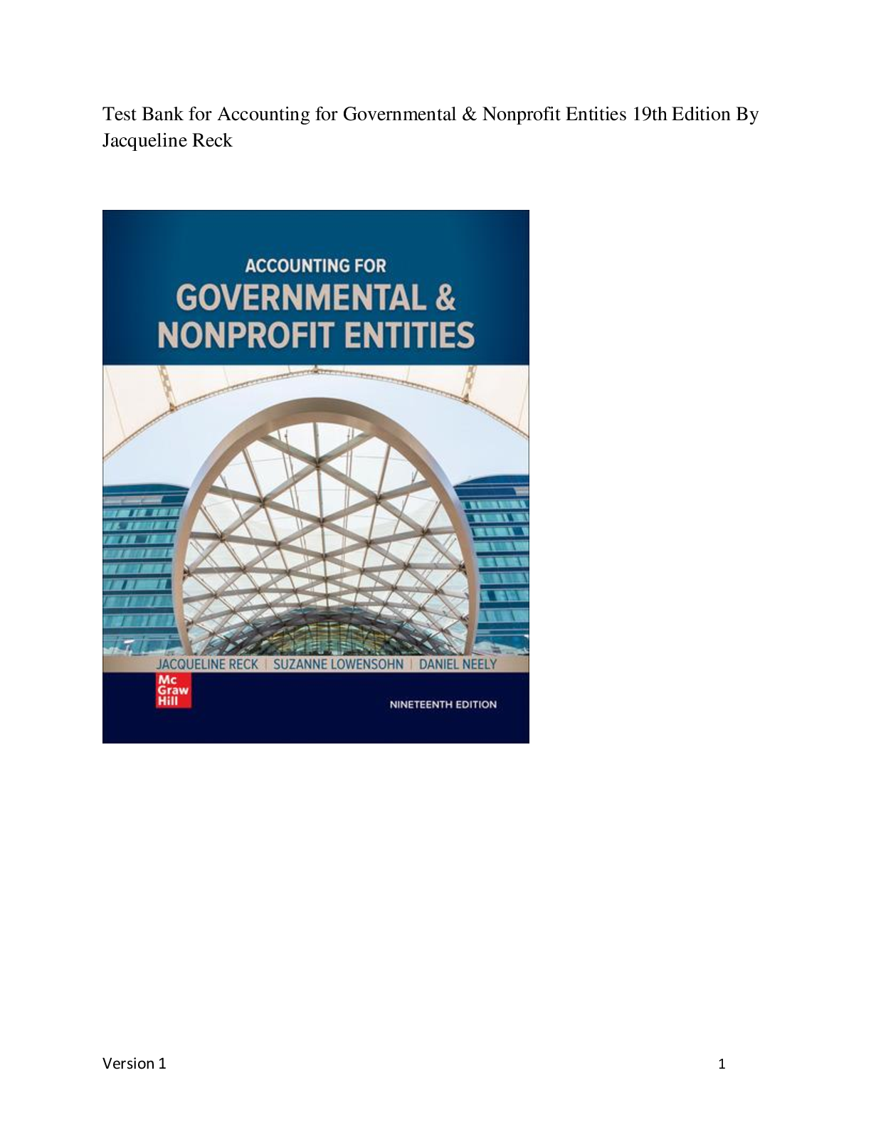 Education > TEST BANKS > Test Bank for Accounting for Governmental & Nonprofit Entities 19th Edition By Jacqueline Reck (All)