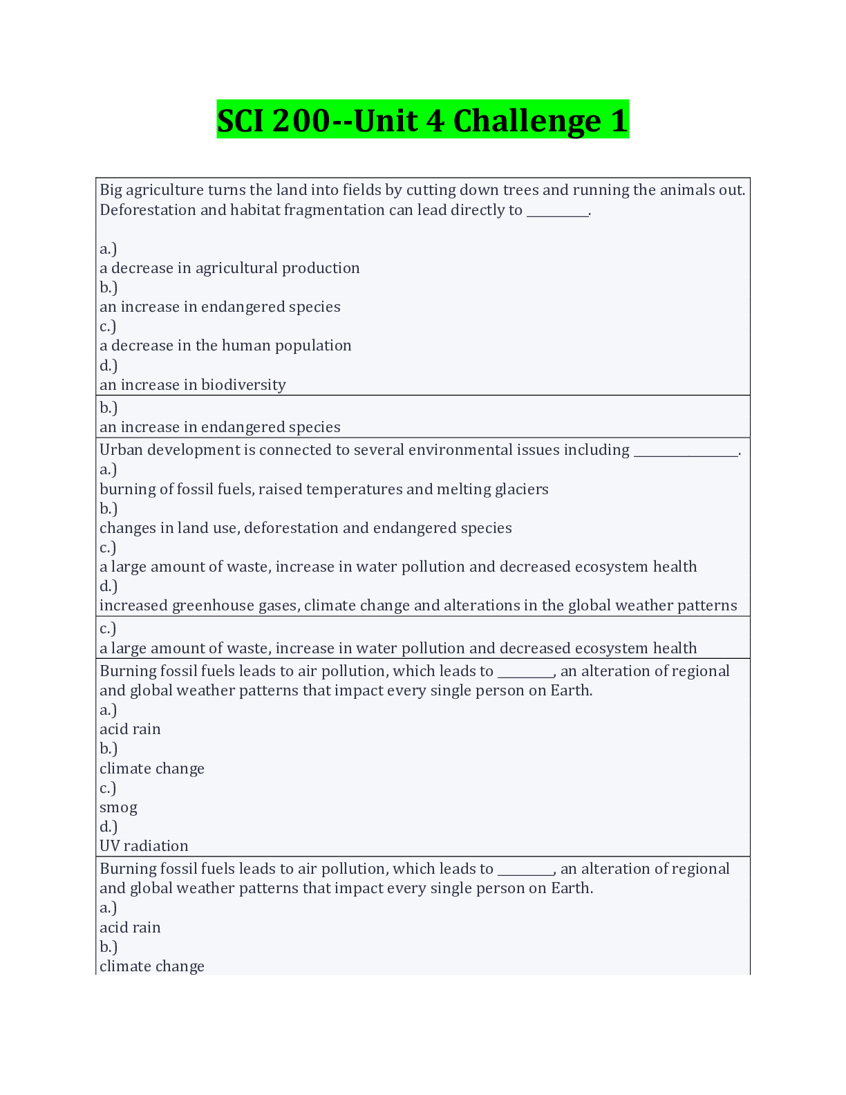 Education > EXAM > SCI 200--Unit 1 Challenge 2 Questions And Answers 2022/2023 (All)