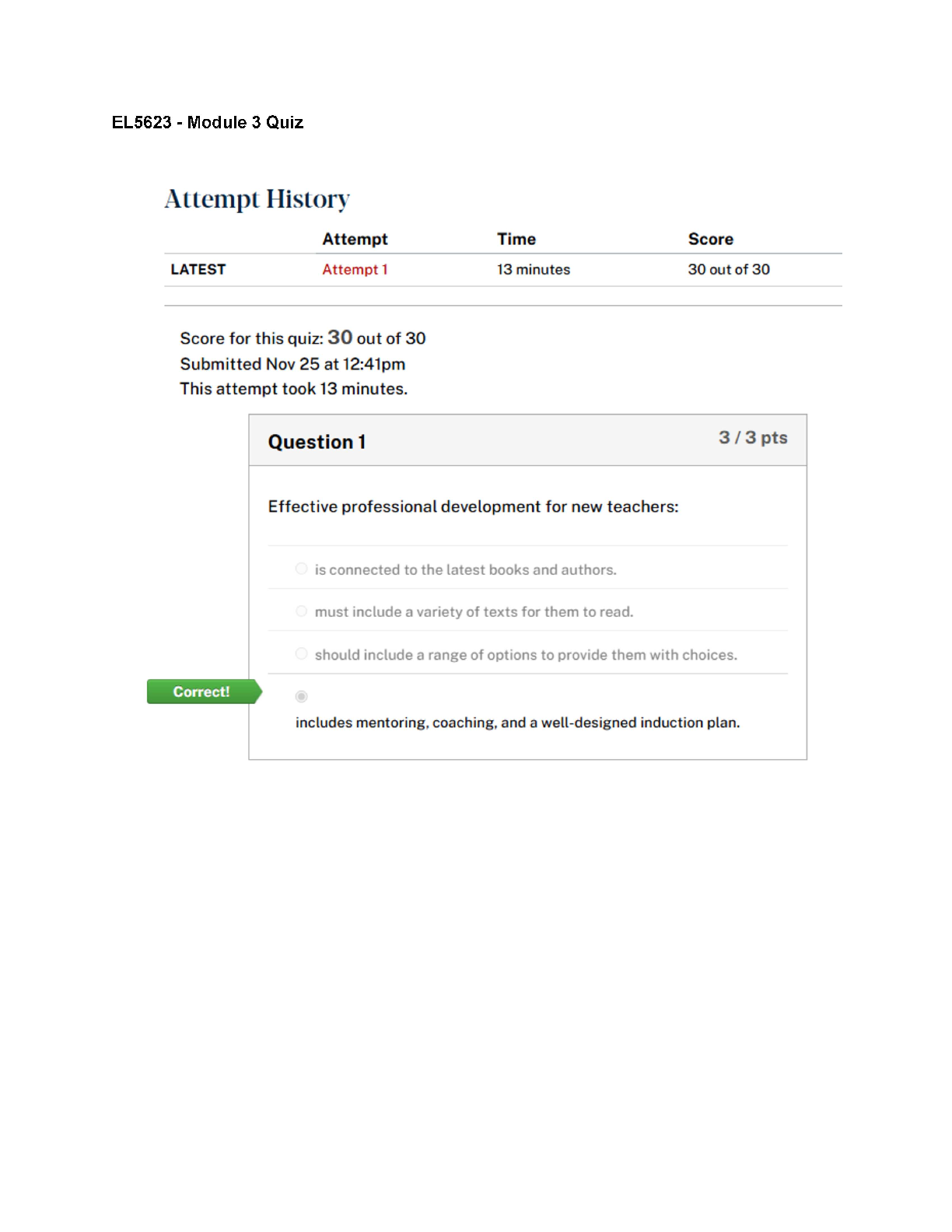Education > EXAM > EL 5623 Module 3 Quiz | Score 30/30 | American College of Education (All)