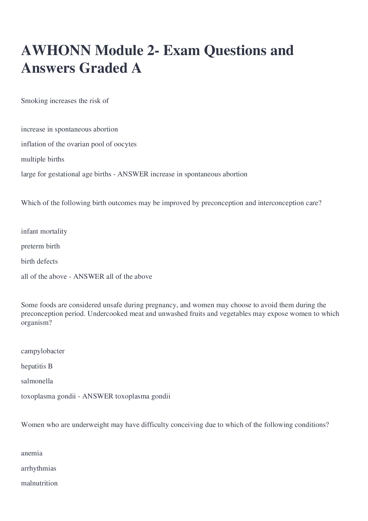 Education > EXAM > AWHONN Module 2- Exam Questions and Answers Graded A (All)