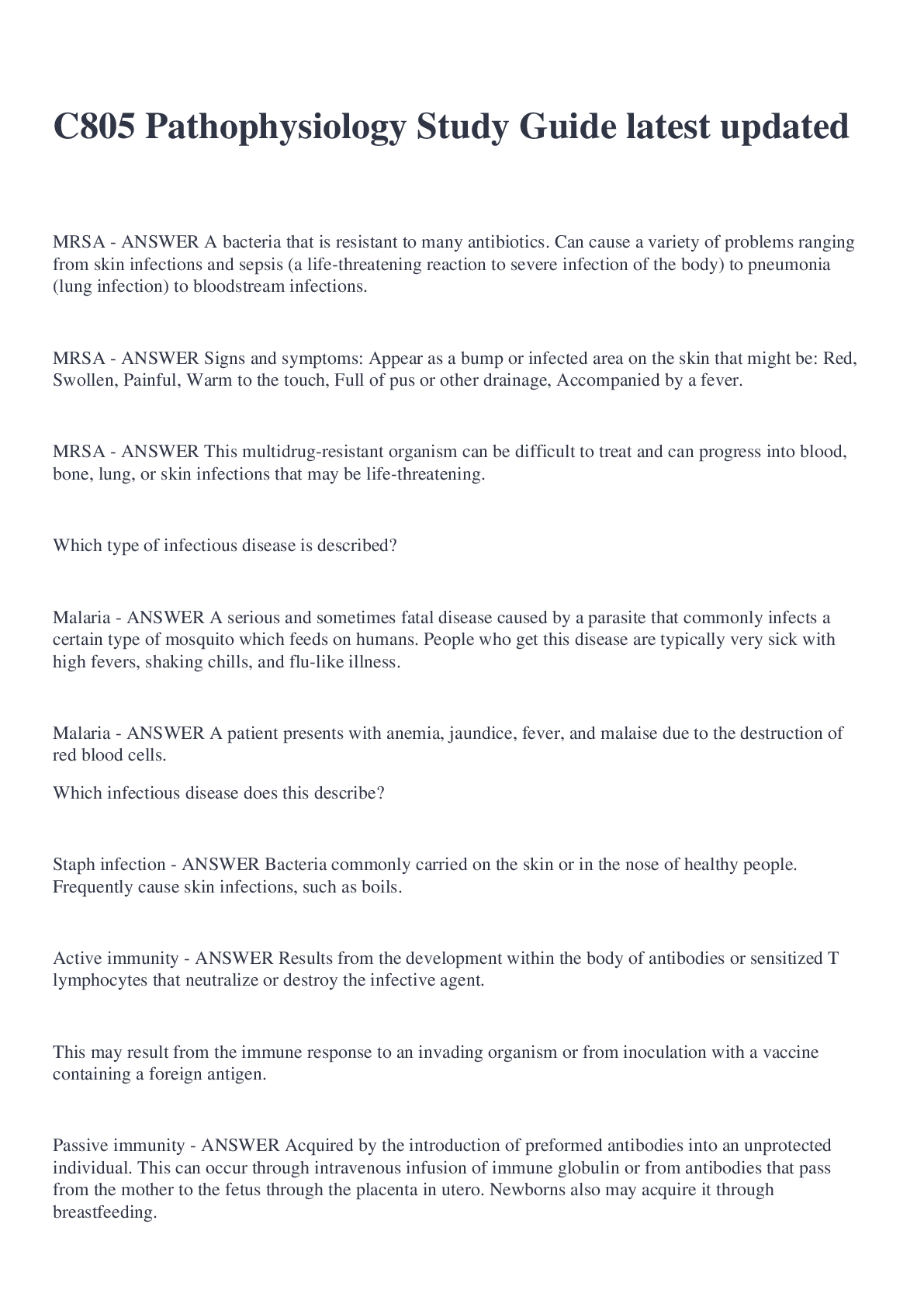 Education > EXAM > C805 Pathophysiology Study Guide latest updated (All)