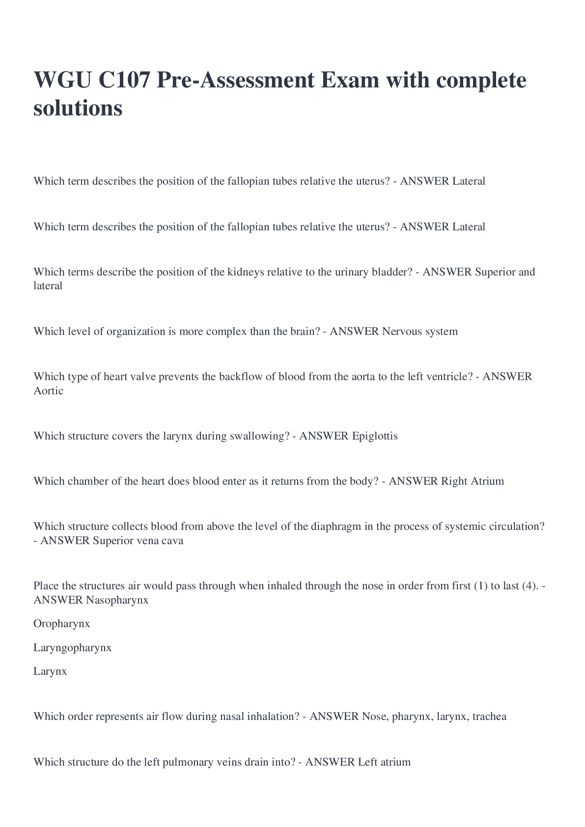 Education > EXAM > WGU C107 Pre-Assessment Exam with complete solutions (All)