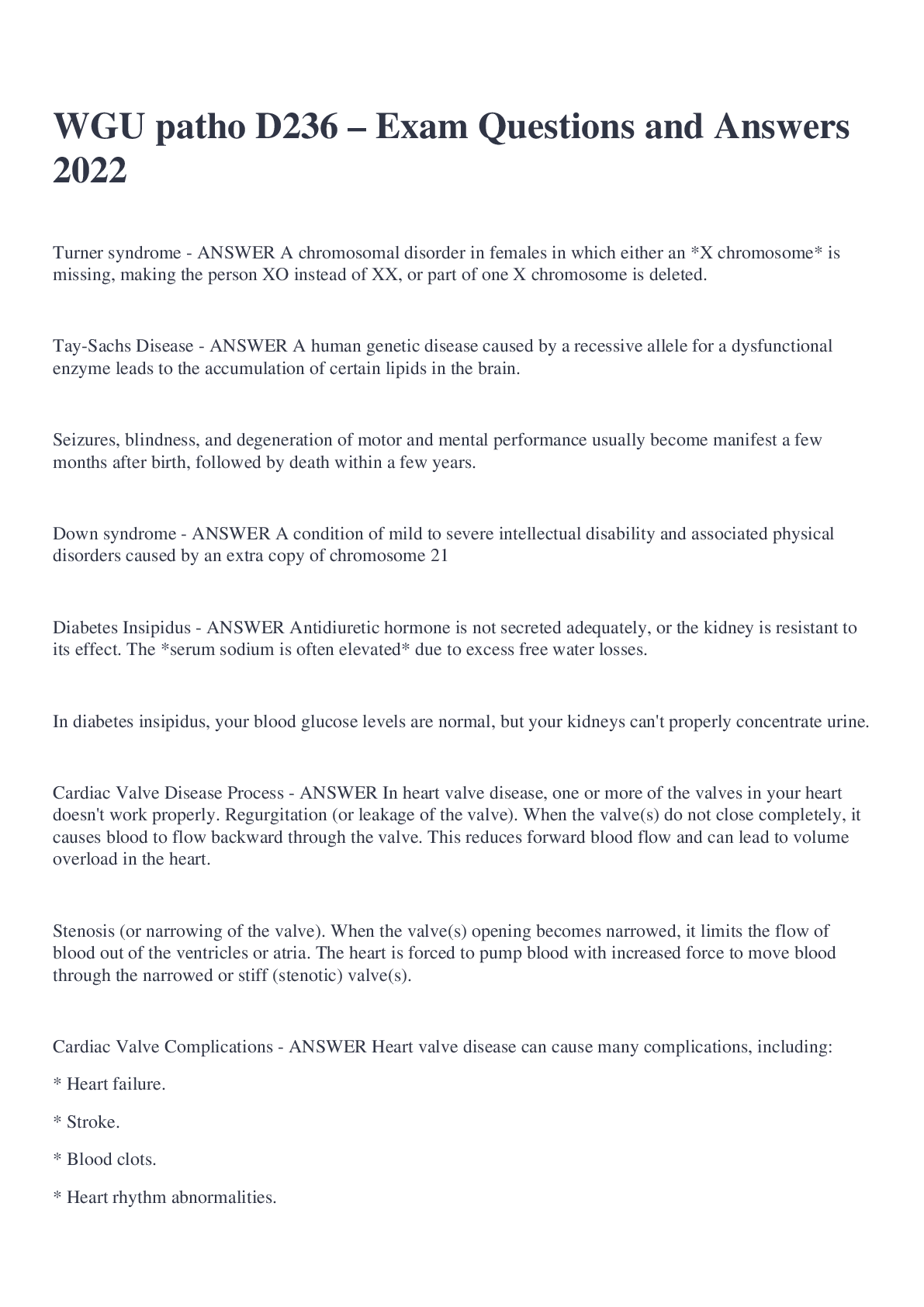 Education > EXAM > WGU pathophysiology D236-Exam Questions and Answers (All)