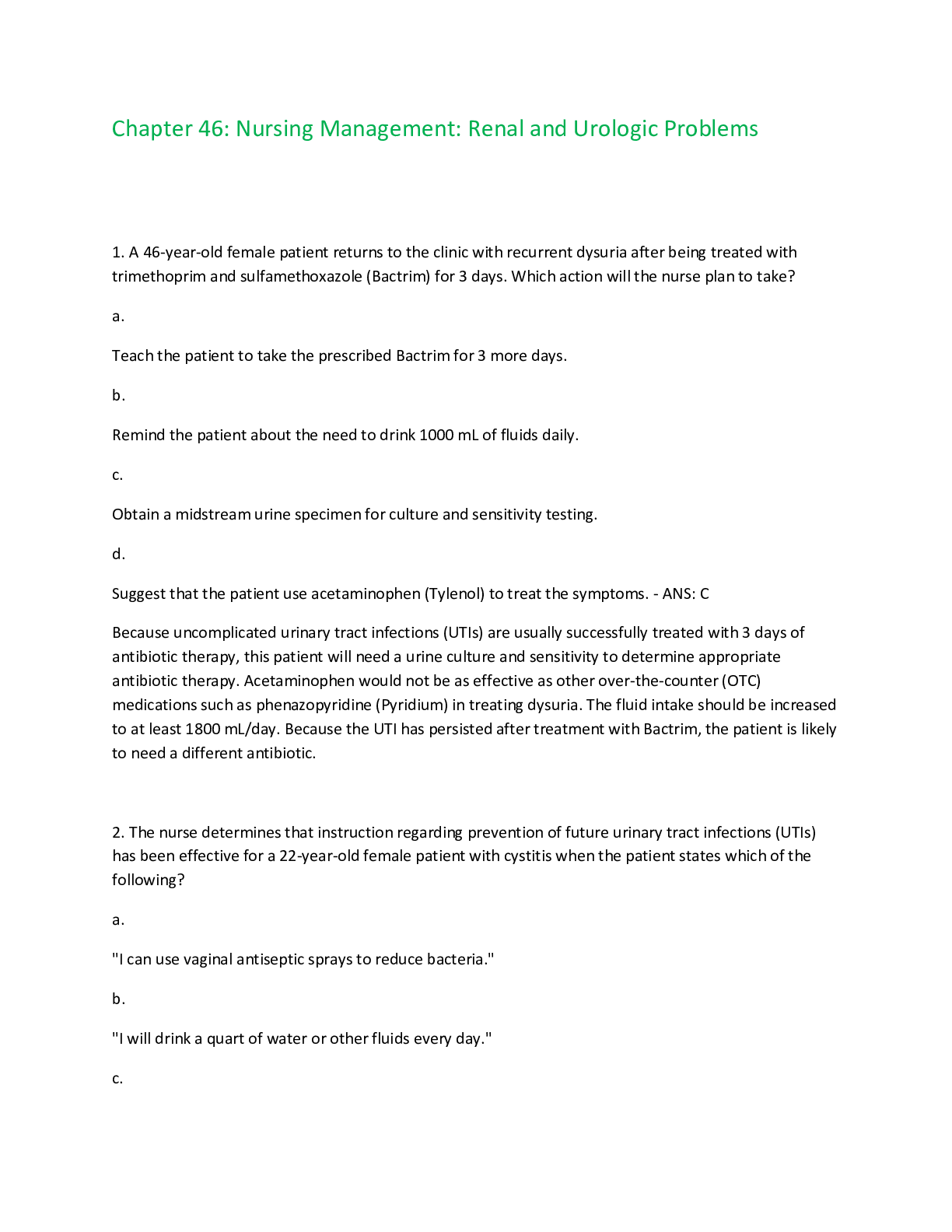 Education > EXAM > Chapter 46 Nursing Management Renal and Urologic Problems (All)