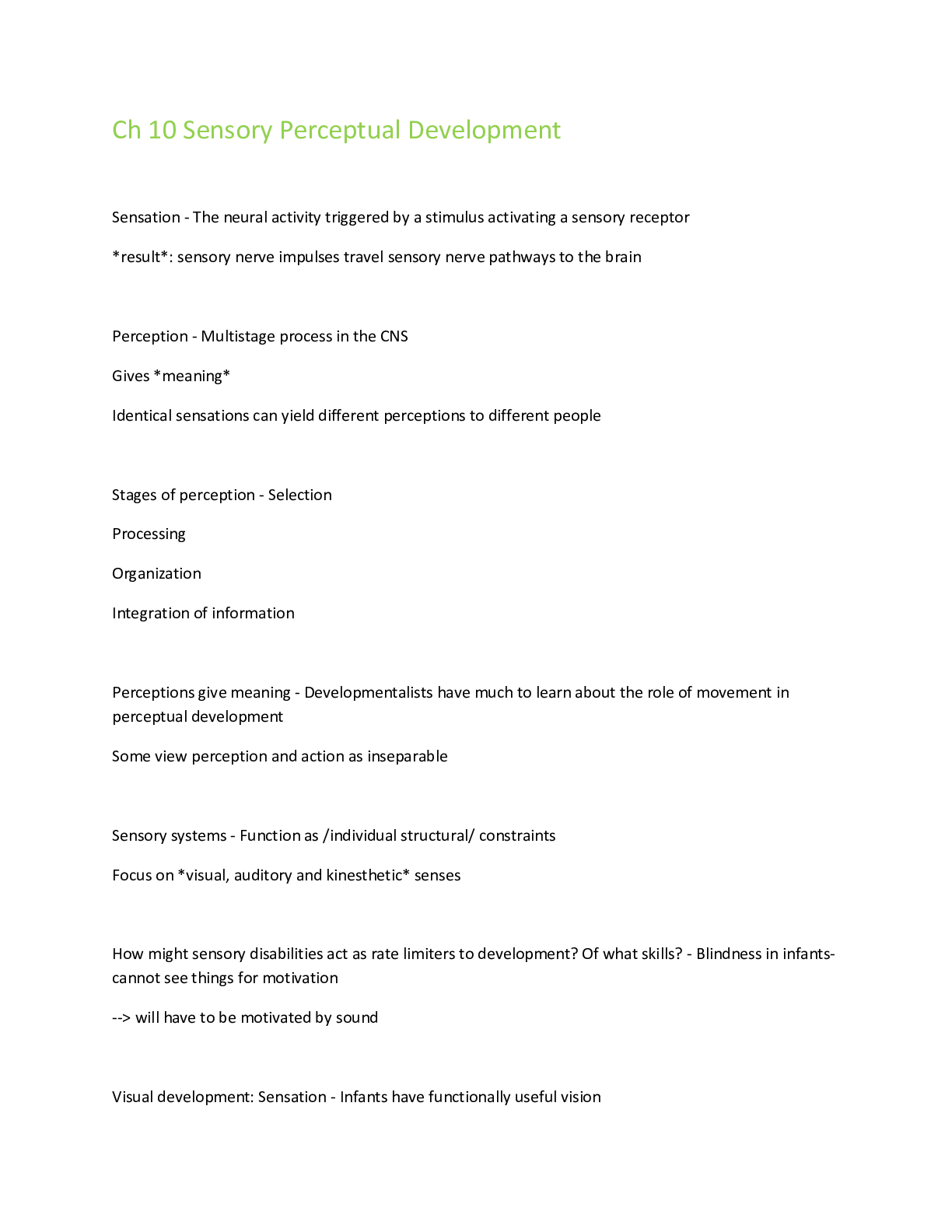 Education > EXAM > Ch 10 Sensory Perceptual Development (All)