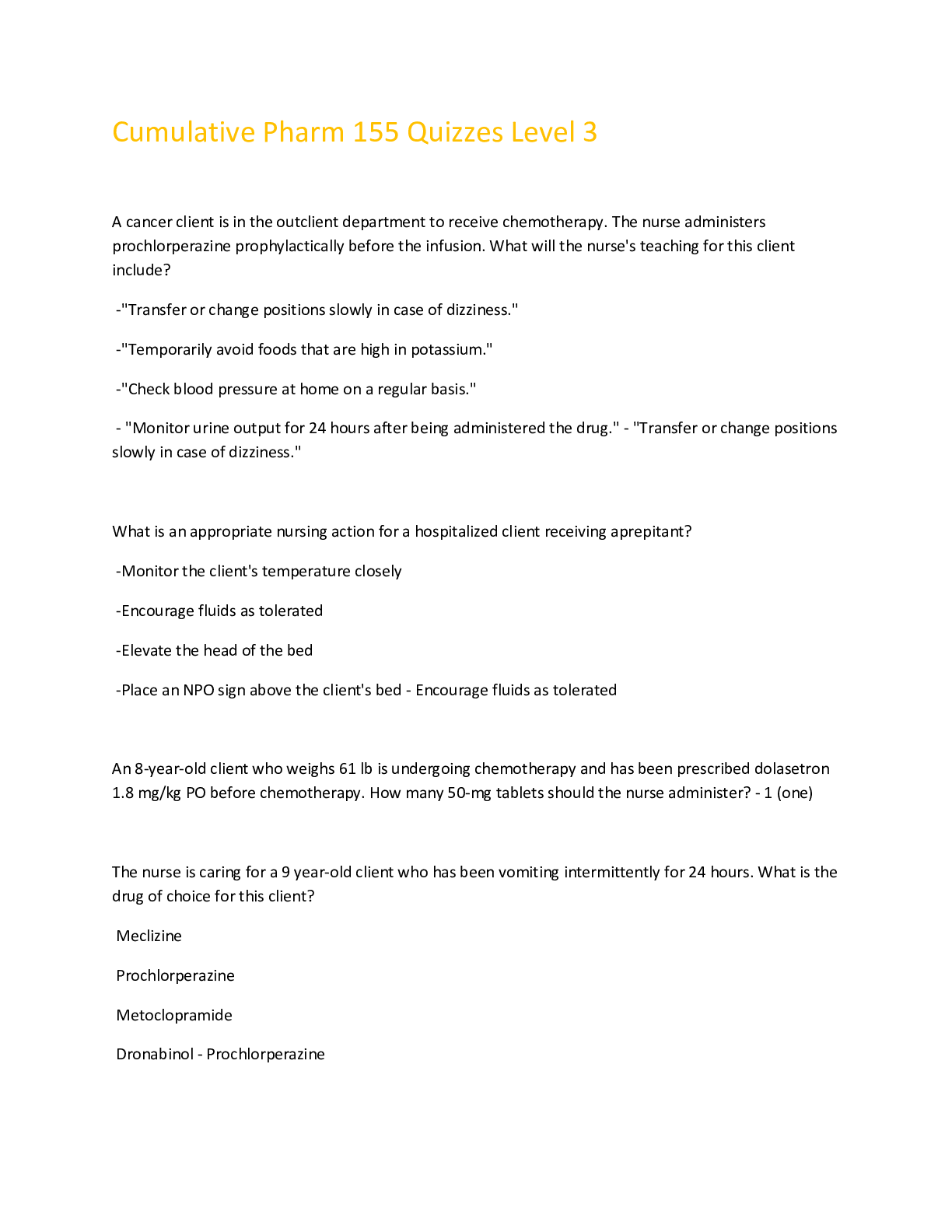 Education > EXAM > Cumulative Pharm 155 Quizzes Level 3 (All)
