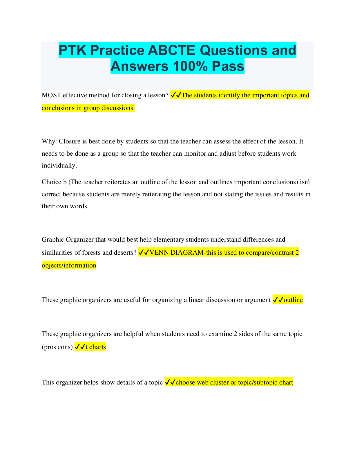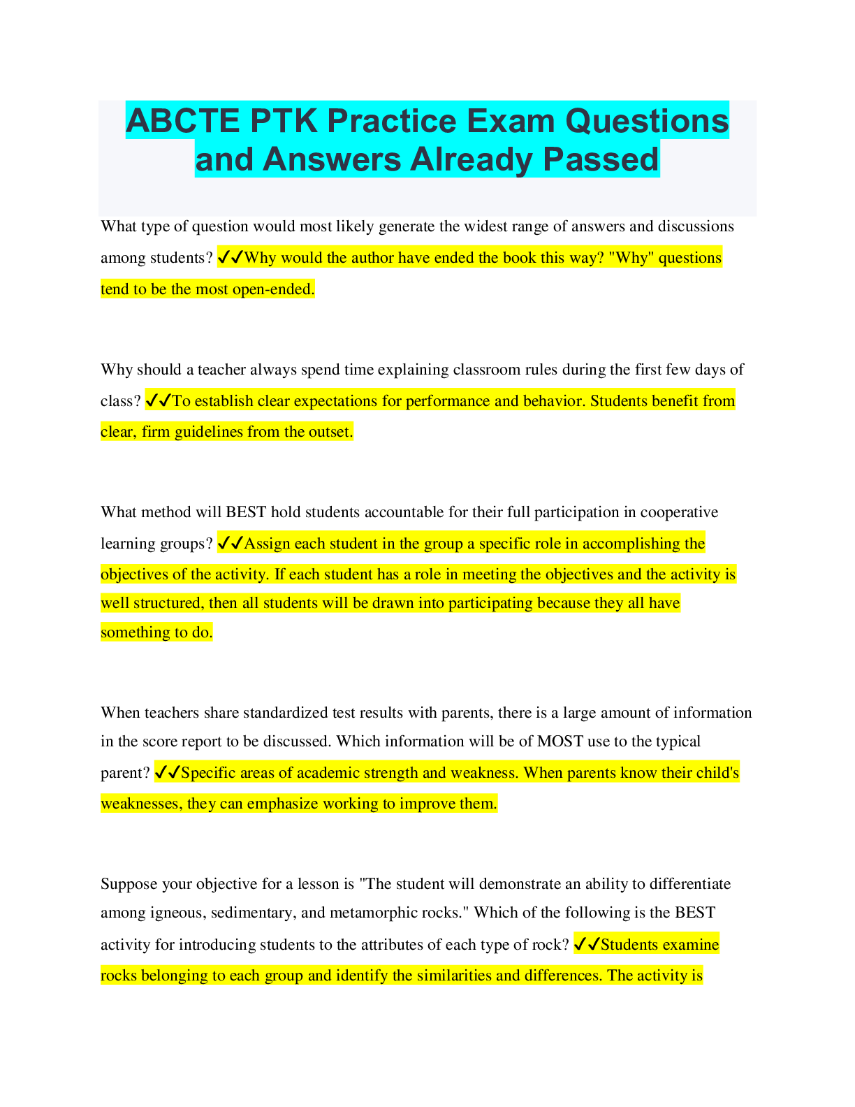Education > QUESTIONS & ANSWERS > ABCTE PTK Exam Study Questions and Answers Rated A (All)