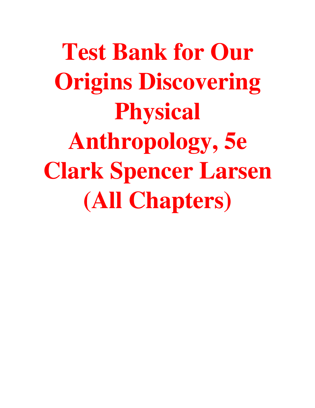 Education > TEST BANKS > Our Origins Discovering Physical Anthropology, 5e Clark Spencer Larsen (Test Bank) (All)