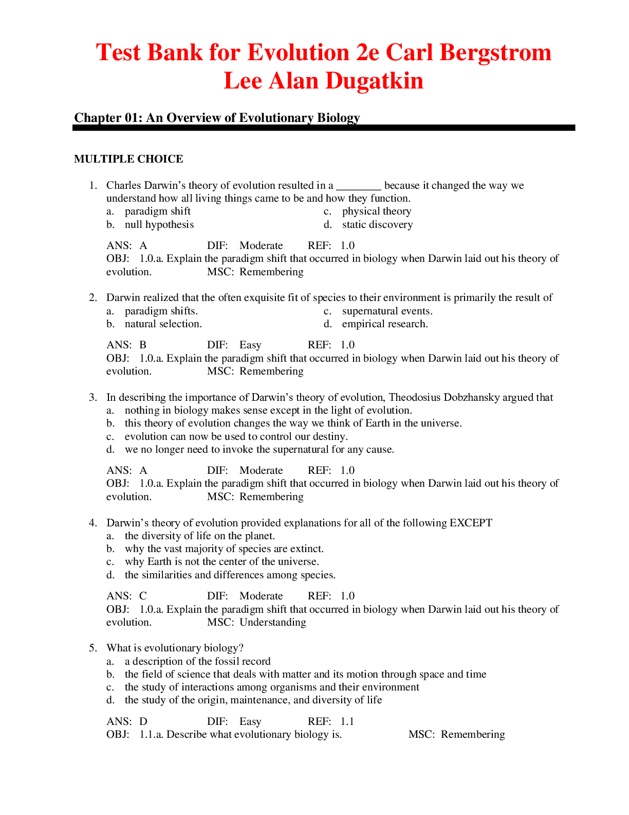 Education > TEST BANKS > Evolution 2e Carl Bergstrom Lee Alan Dugatkin (Test Bank) (All)