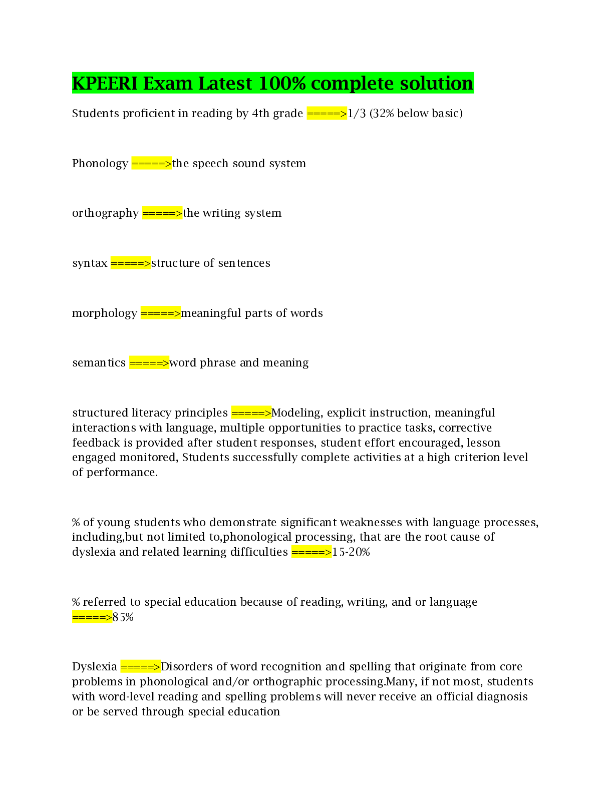 Education > EXAMs > KPEERI Exam Prep || Reading Rockets 101 (180 Questions with complete solution) (All)
