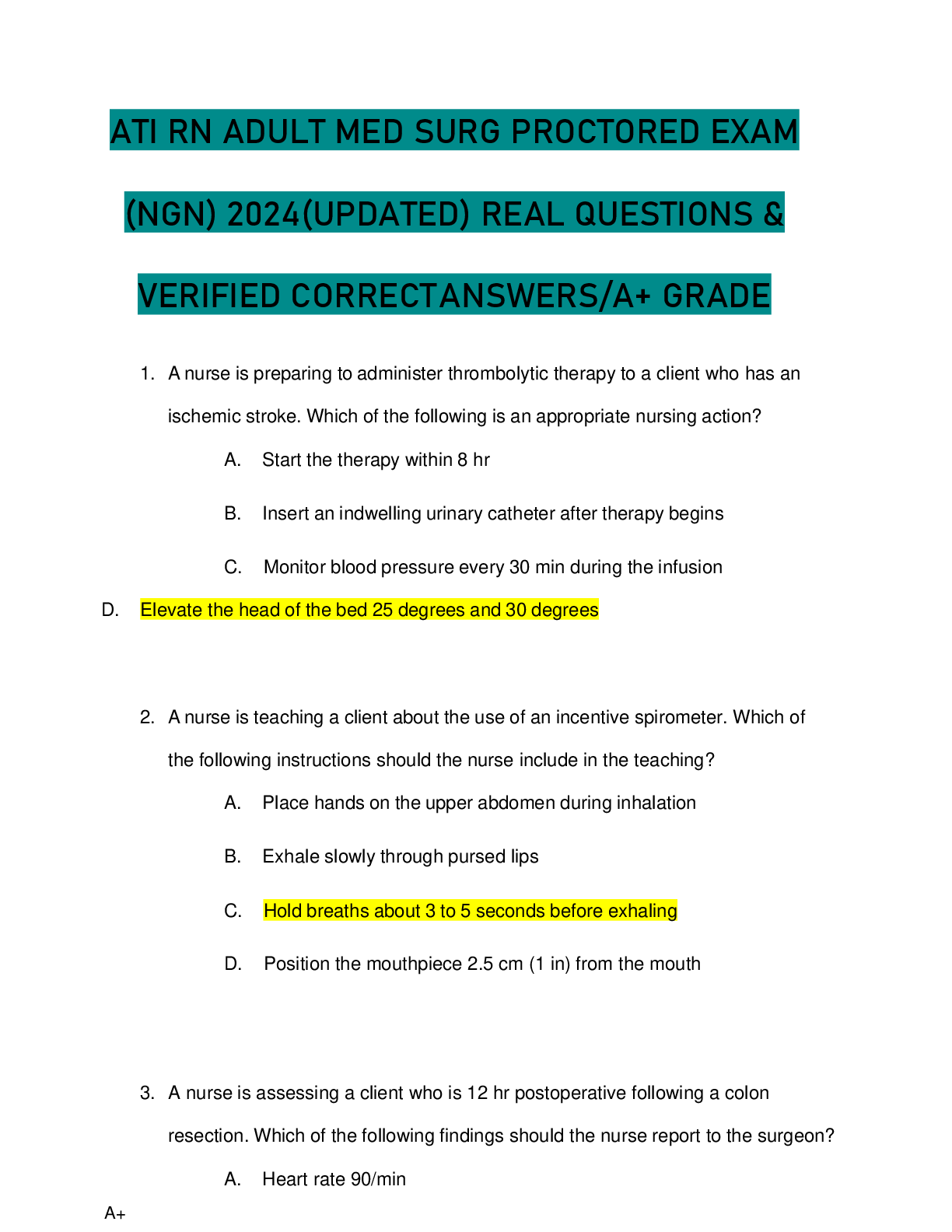 Education > EXAMs > ATI RN ADULT MED SURG PROCTORED EXAM (NGN) 2024(UPDATED) REAL QUESTIONS & VERIFIED CORRECT ANSWERS/A+ GRADE (All)