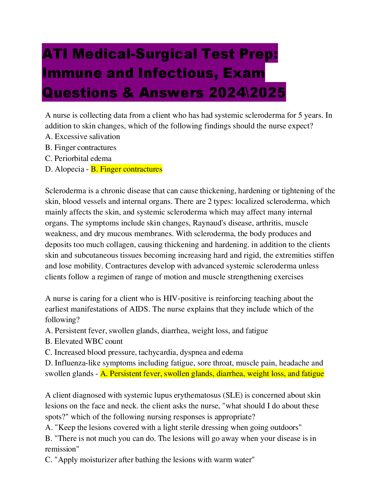Education > EXAMs > ATI Medical-Surgical Test Prep: Immune and Infectious, Exam Questions & Answers 2024\2025 (All)