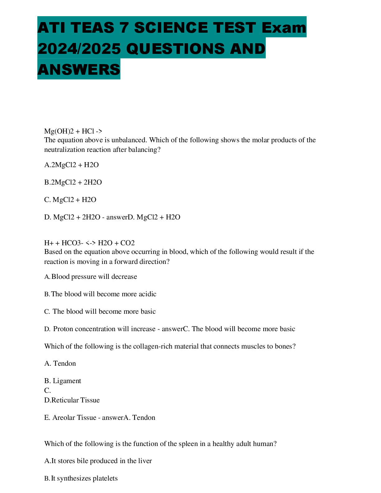 Education > EXAMs > ATI TEAS 7 SCIENCE TEST Exam 2024/2025 QUESTIONS AND ANSWERS (All)