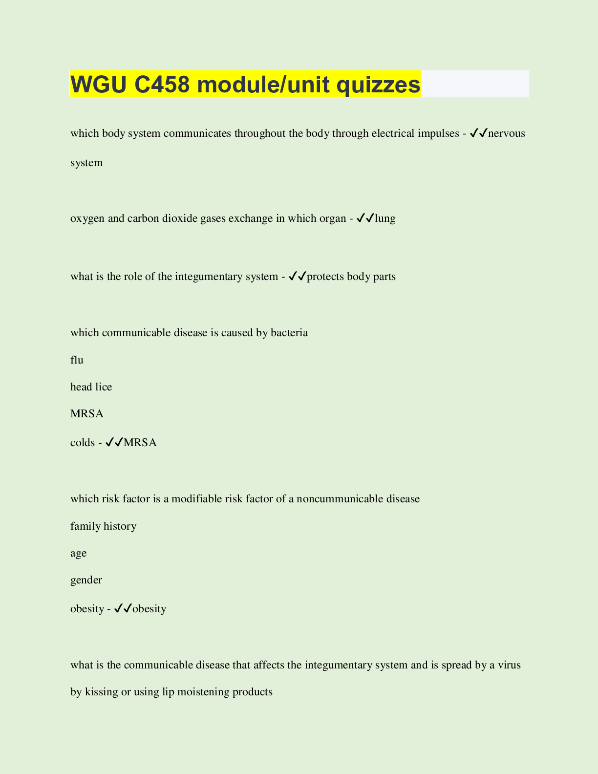 Education > EXAM > WGU C458 module/unit quizzes | 100 Questions with 100% Correct Answers | Verified | Latest Update (All)