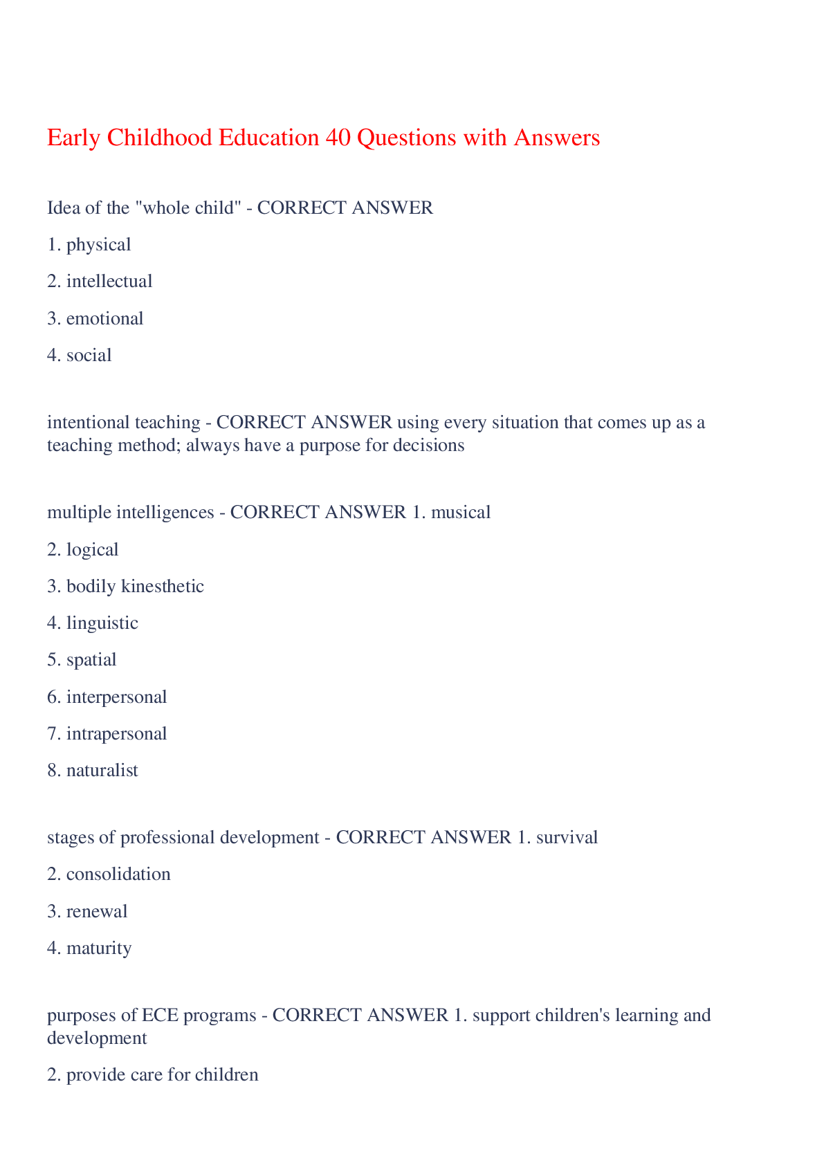 Education > EXAM > Intro to Early Childhood Education Exam 160 Questions with Answers,100% CORRECT (All)