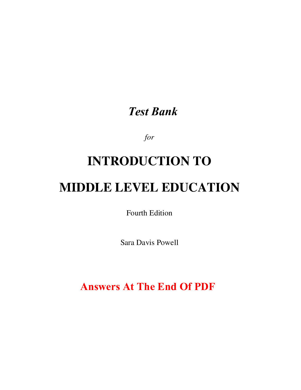 Education > TEST BANKS > Test Bank For Introduction to Middle Level Education 4th Edition By Sara Powell (All Chapters, 100% Original Verified, A+ Grade) (All)
