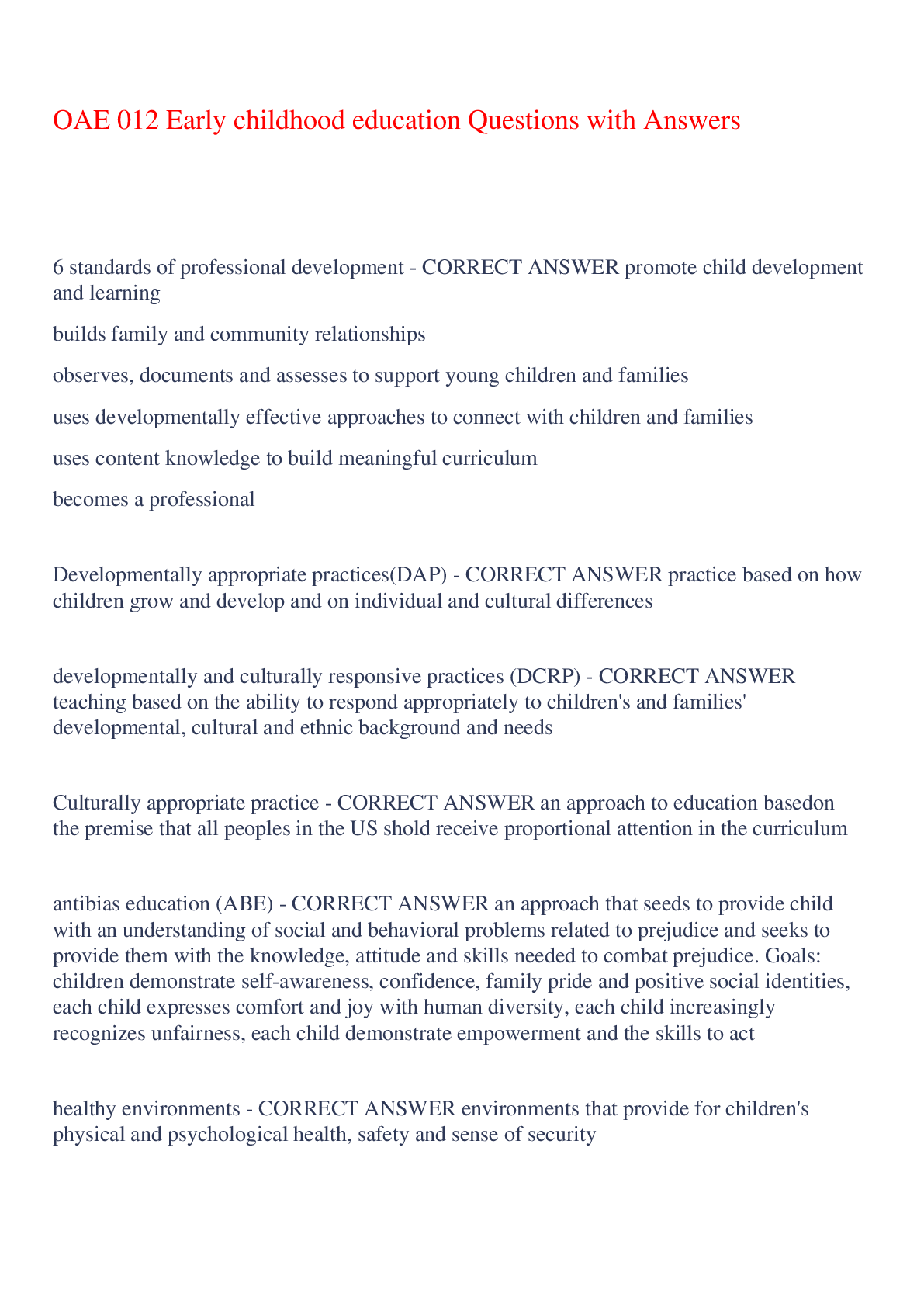 Education > EXAM > OAE 012 Early childhood education Questions with Answers,100% CORRECT (All)