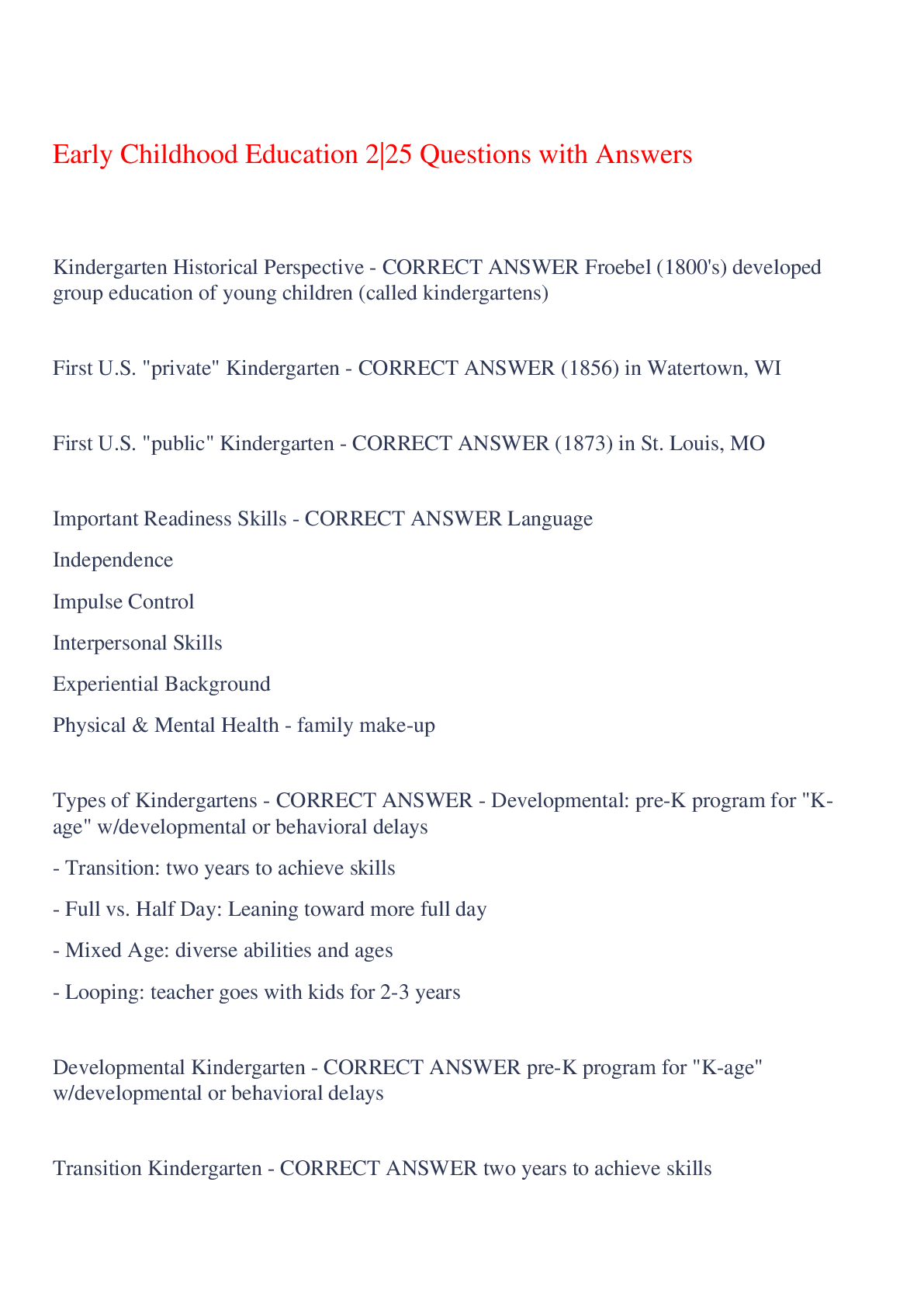 Education > EXAM > Early Childhood Education 2|25 Questions with Answers,100% CORRECT (All)