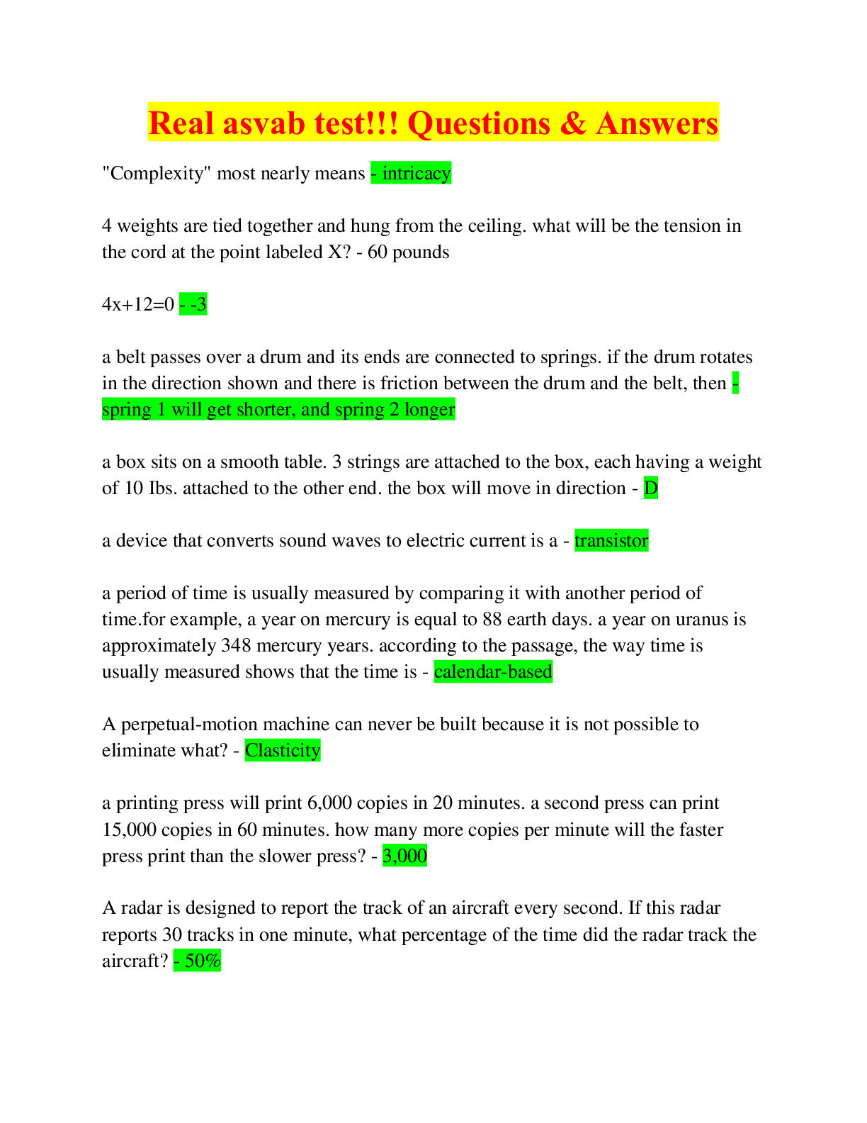 Education > EXAM > Real asvab test!!! Updated 2023/24, Exam Questions & Answers (All)