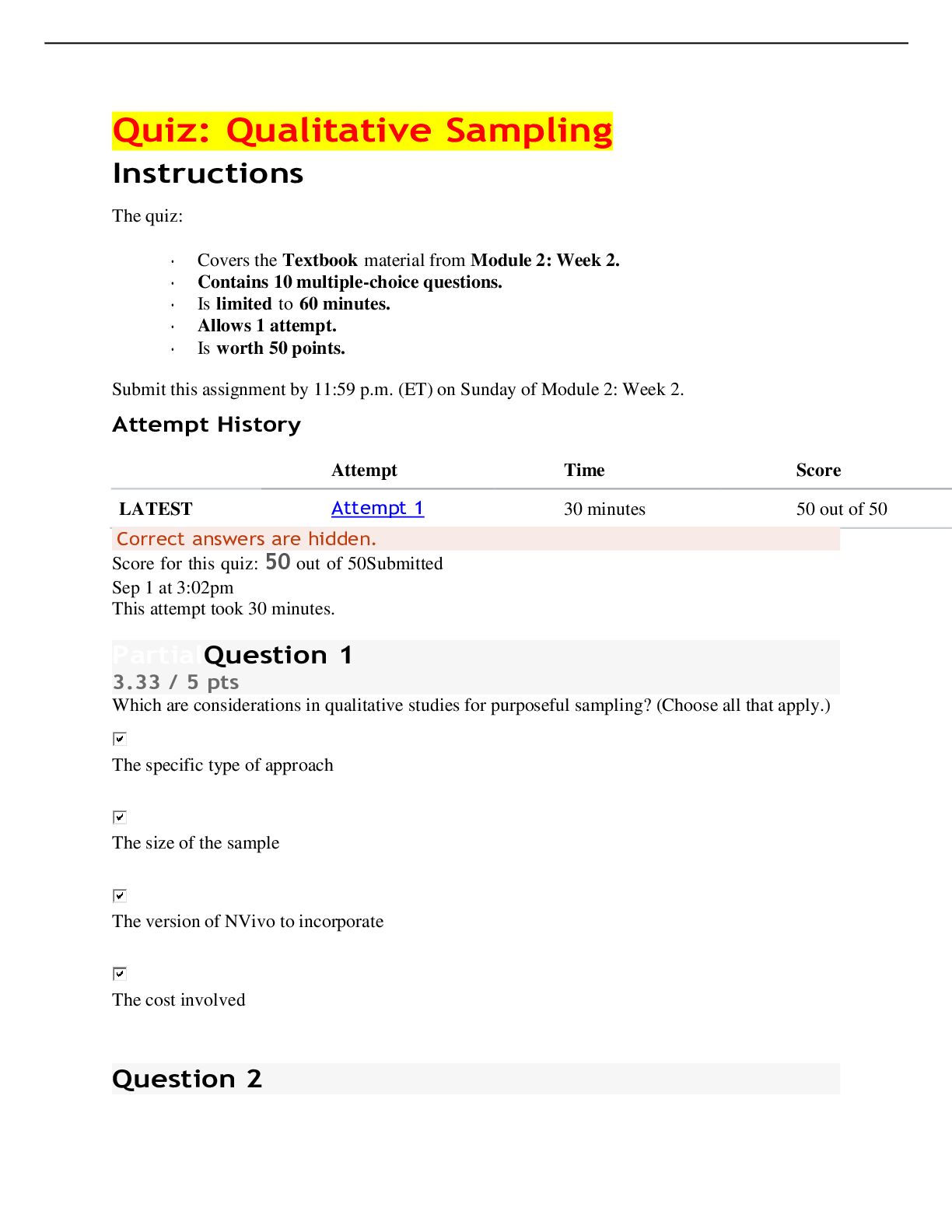 Education > Quiz > EDUC 817 Quiz Qualitative Sampling (GRADED A) Questions and Answers (All)