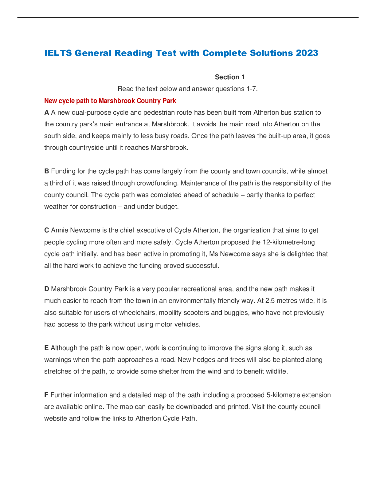 Education > EXAM > IELTS General Reading Test with Complete Solutions 2023 (All)