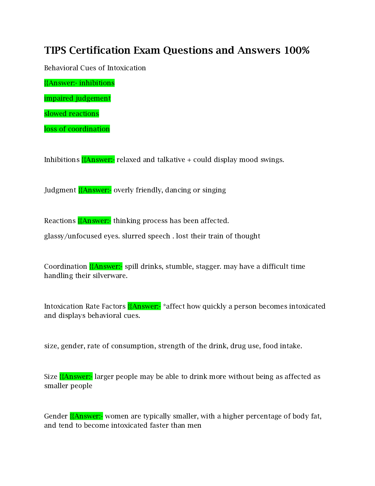 Education > EXAM > TIPS Certification Exam Questions and Answers 100% (All)