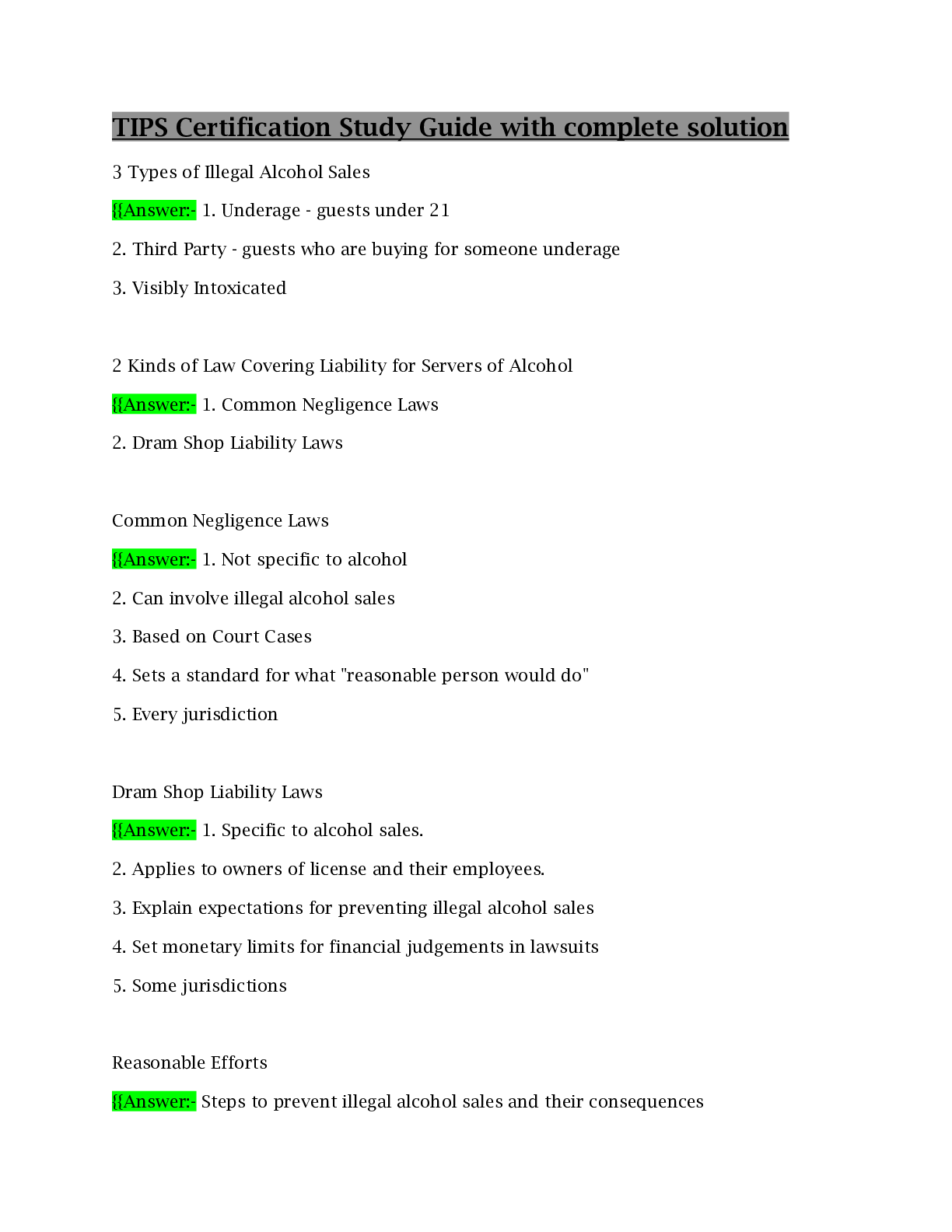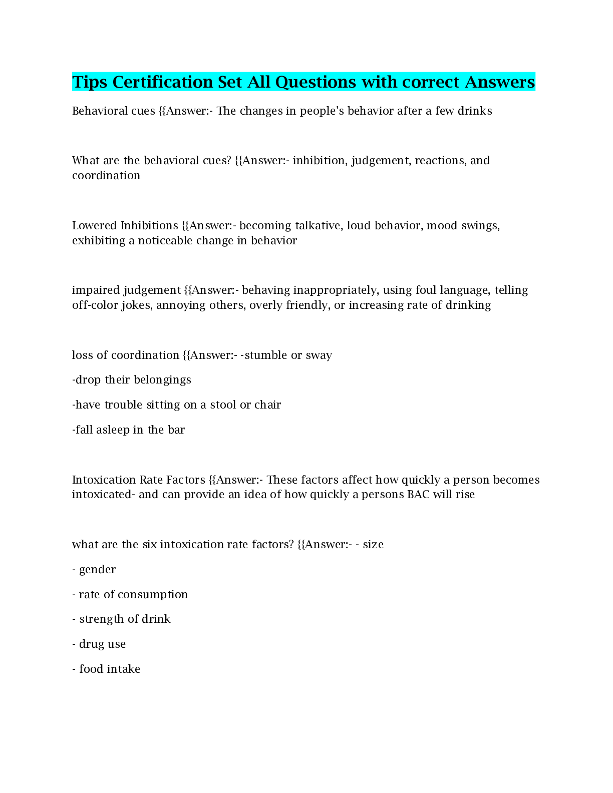 Education > EXAM > Tips Certification Set All Questions with correct Answers (All)