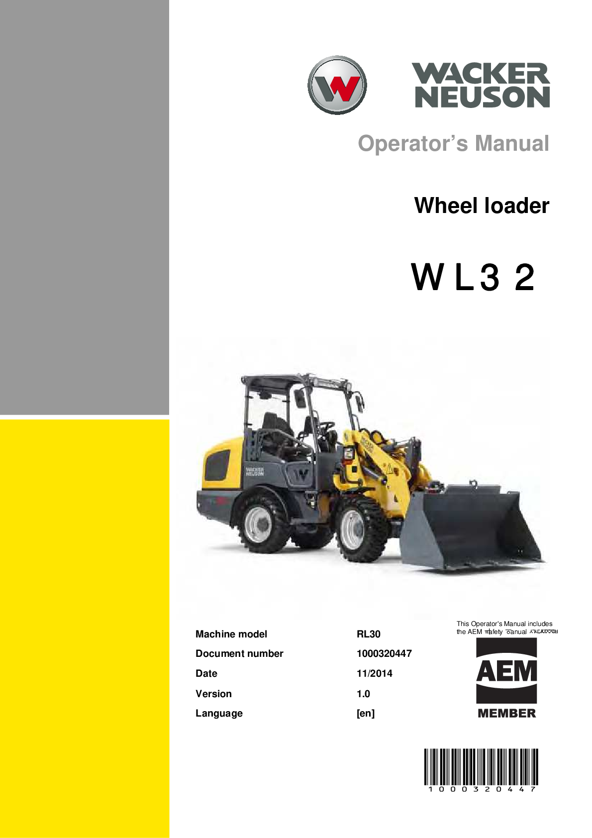 Education > Manual > WACKER NEUSON WL32 WHEEL LOADER OPERATORS MANUAL (All)