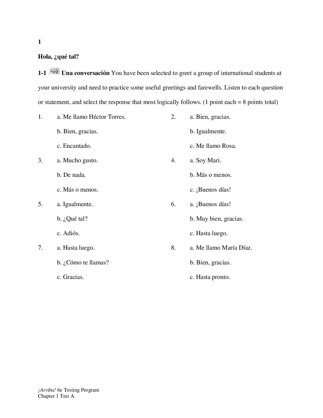 Education > TEST BANKS > Test Bank For ¡Arriba! Comunicación y cultura 6th Edition By Eduardo Bacon Nibert (All)