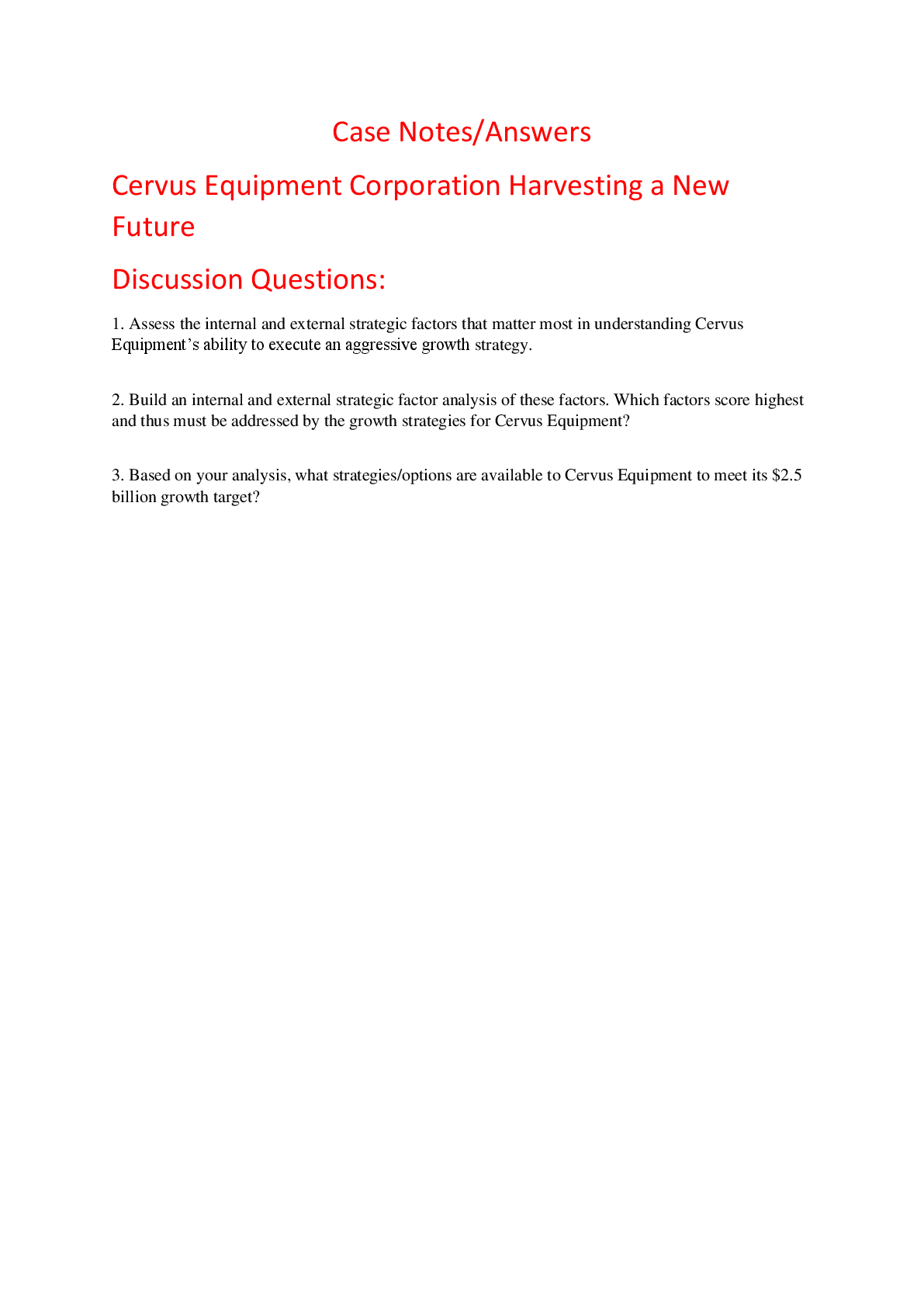 Education > eBook-PDF > Case Notes/Answers Cervus Equipment Corporation Harvesting a New Future (All)