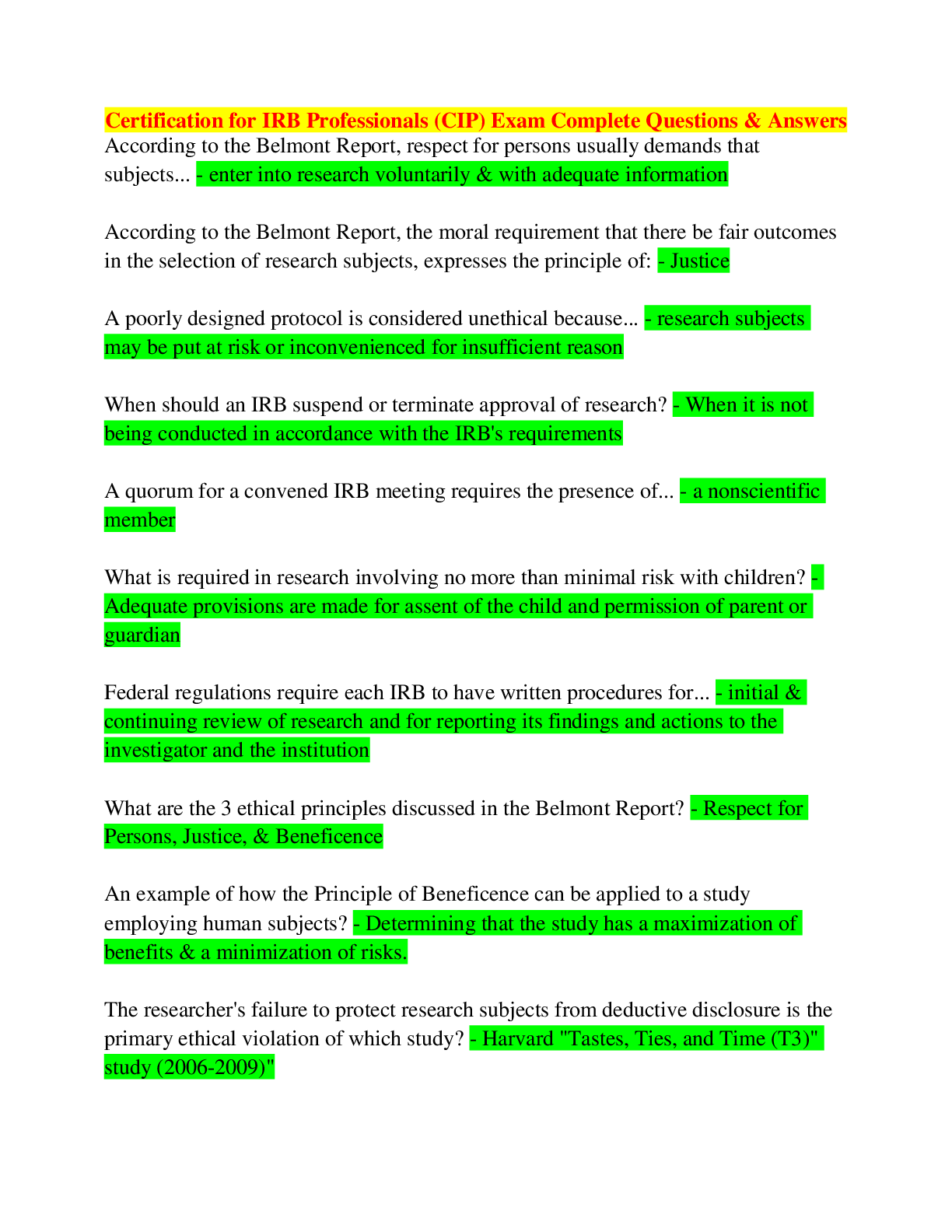 Education > EXAM > Certification for IRB Professionals (CIP) Exam Complete Questions & Answers (All)