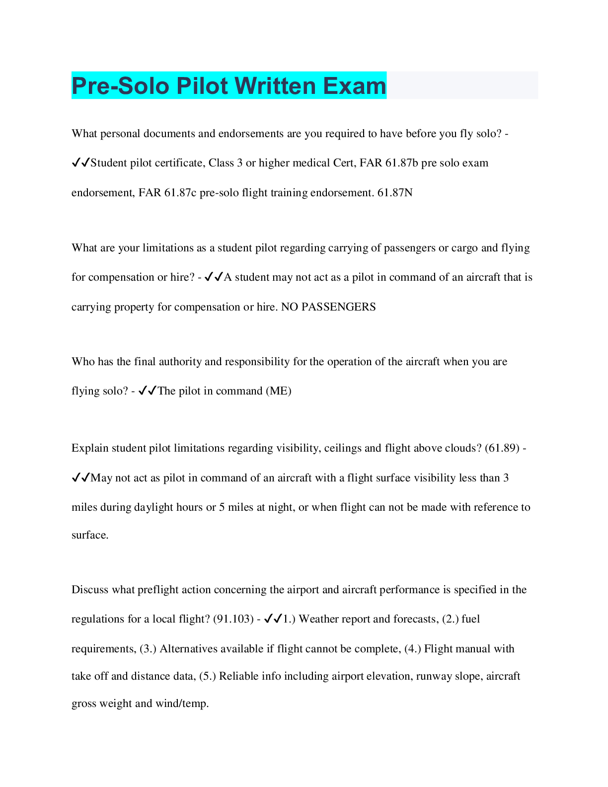 Education > QUESTIONS & ANSWERS > Pre-Solo Pilot Written Exam (All)