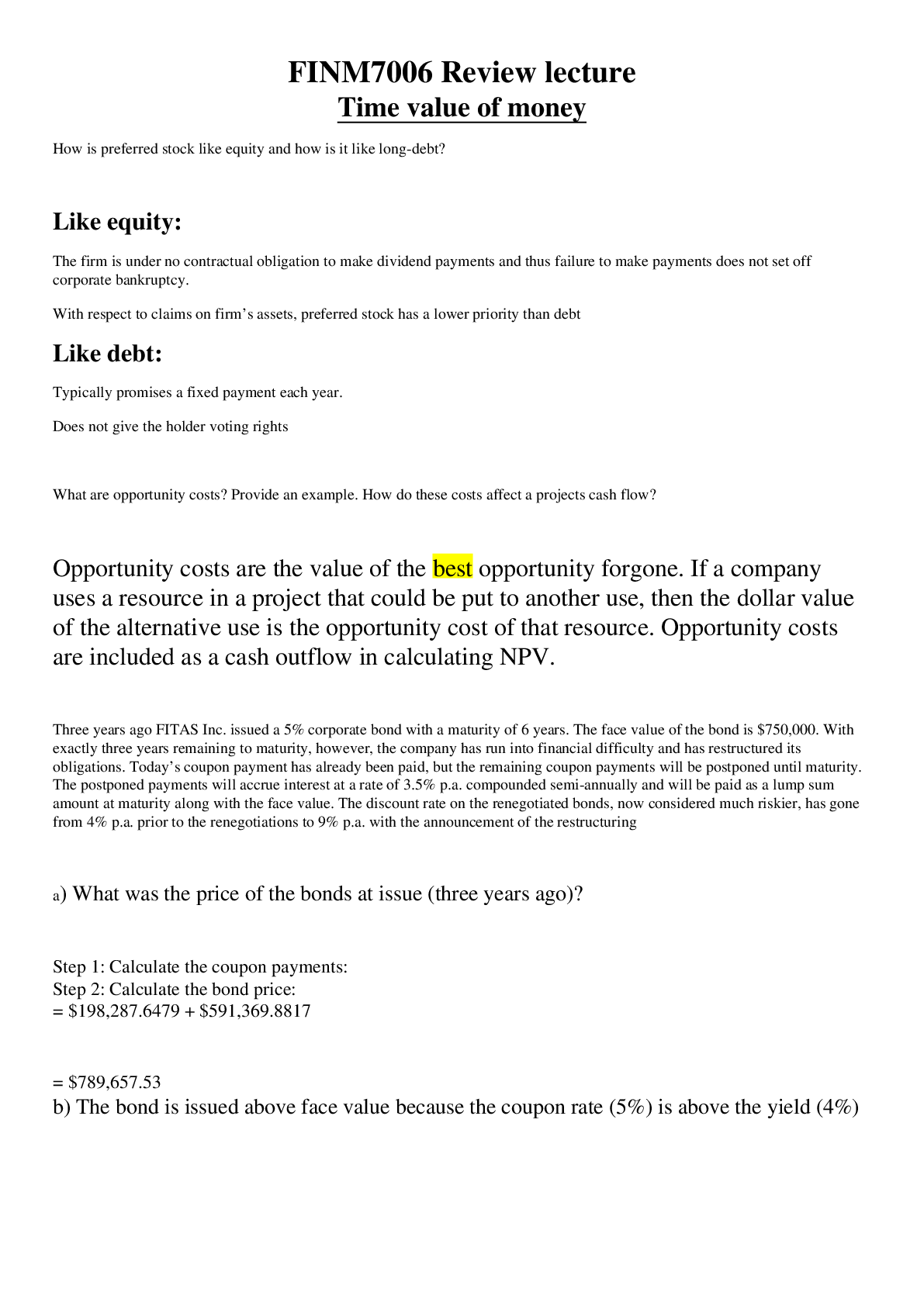 Education > QUESTIONS & ANSWERS > [Solved] FINM 7006 Review lecture (All)