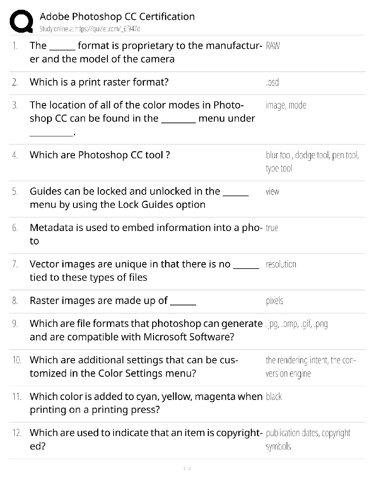 Media Studies > QUESTIONS & ANSWERS > 2021 Adobe Photoshop CC Certification Notes / ACE Exam Review / 2025 Updated Study Guide / Score 100% (All)