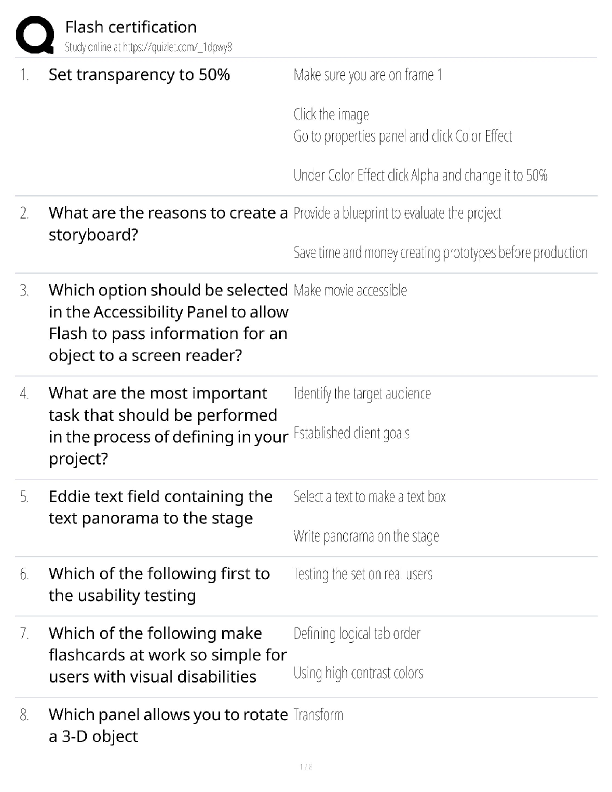 Media Studies > QUESTIONS & ANSWERS > Adobe Flash Certification / Practice Exam & Study Guide / 2025 Update / Score 100% on Test (All)