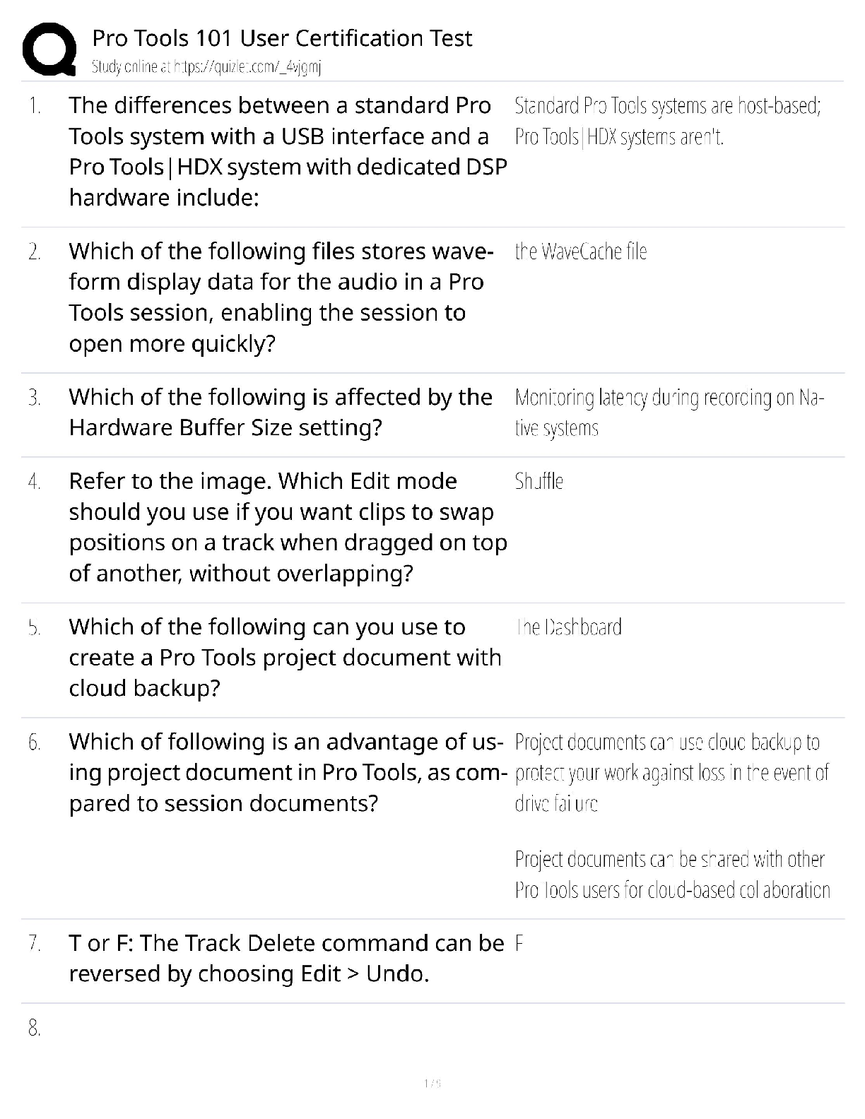 Media Studies > QUESTIONS & ANSWERS > Pro Tools 101 Certification Test / User Exam & Study Guide / 2025 Update / Score 100% (All)