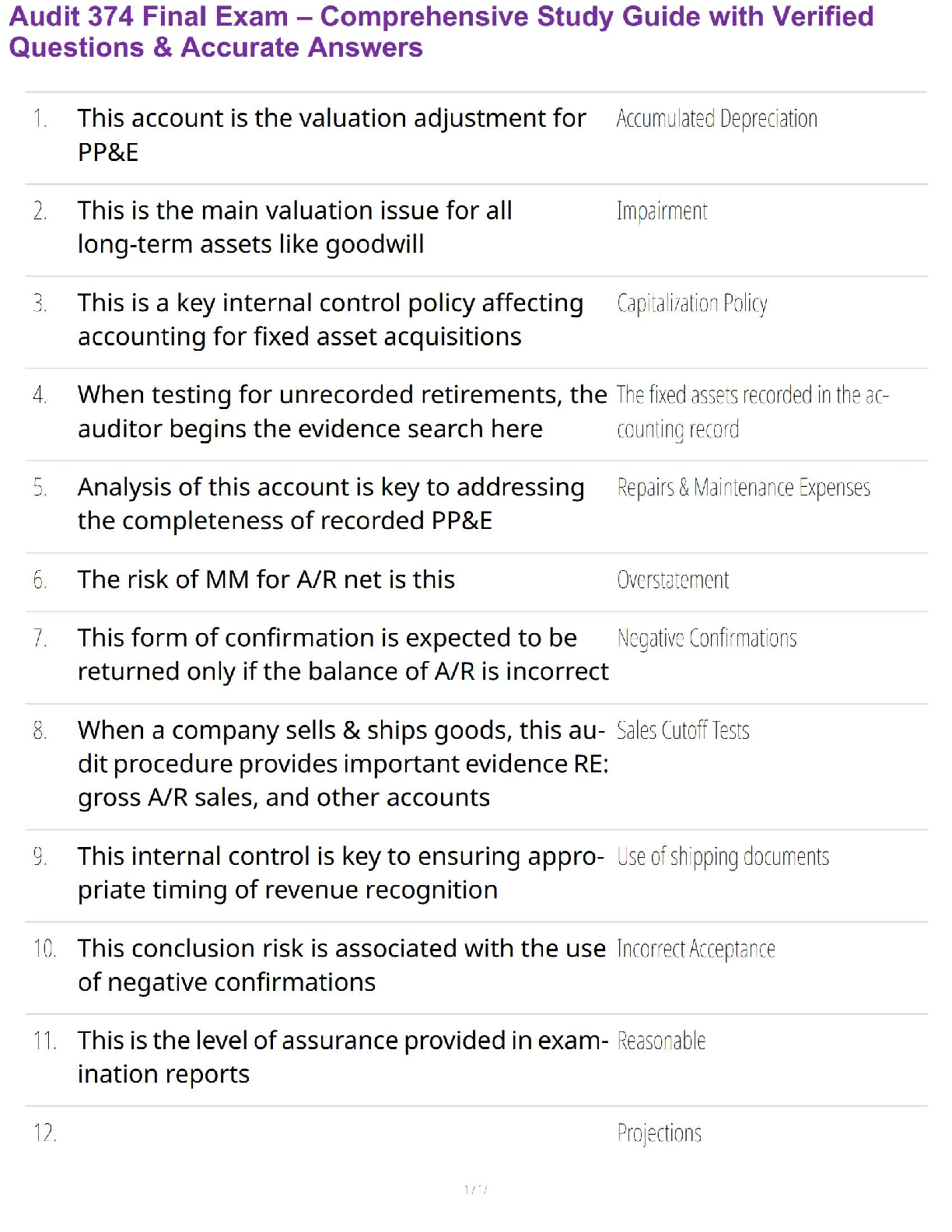 Auditing > EXAM > Audit 374 Final Exam – Comprehensive Study Guide with Verified Questions & Accurate Answers (All)