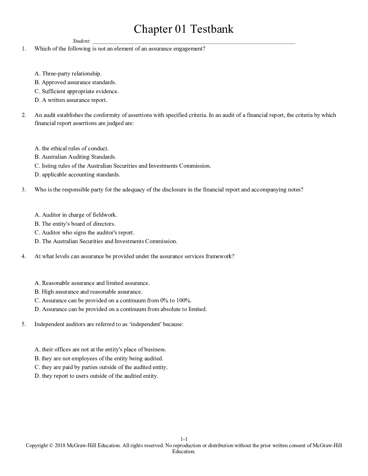 Auditing > TEST BANKS > Auditing and Assurance Services, Global Edition 17th Edition by Arens, Elder, Mark Beasley and Hogan | All Chapters 1-26 | TEST BANK (All)