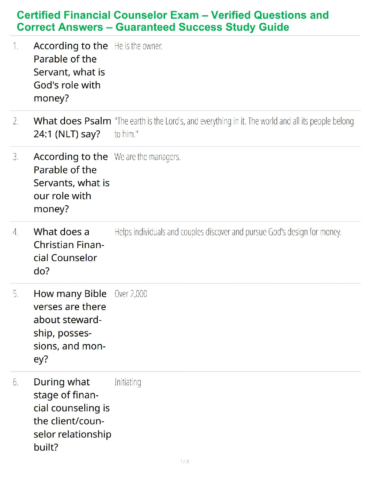 Financial Auditing > STUDY GUIDE > Certified Financial Counselor Exam – Verified Questions and Correct Answers – Guaranteed Success Study Guide (All)