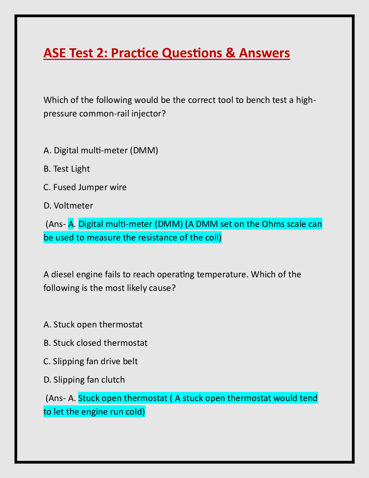 Engineering > EXAM > ASE Test 2: Practice Questions & Answers: Latest Updated (All)