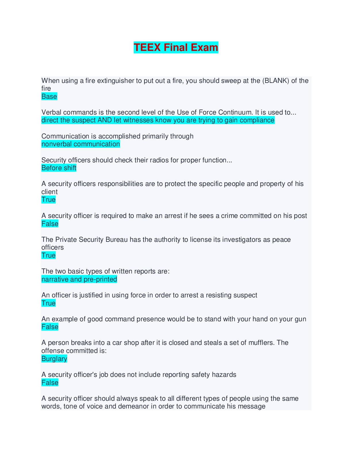 Engineering > EXAM > TEEX Final Exam - Questions and Answers (All)