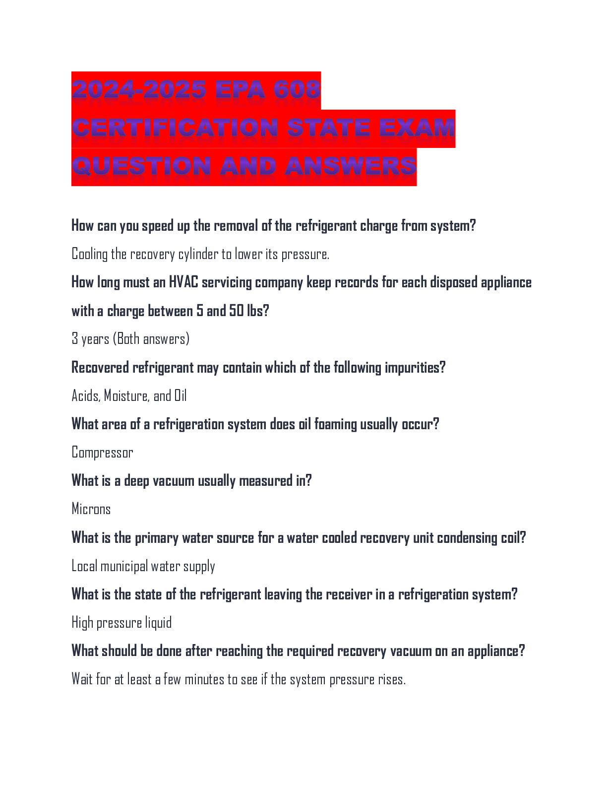 Engineering > EXAM > 2024-2025 EPA 608 CERTIFICATION STATE EXAM QUESTION AND ANSWERS (All)
