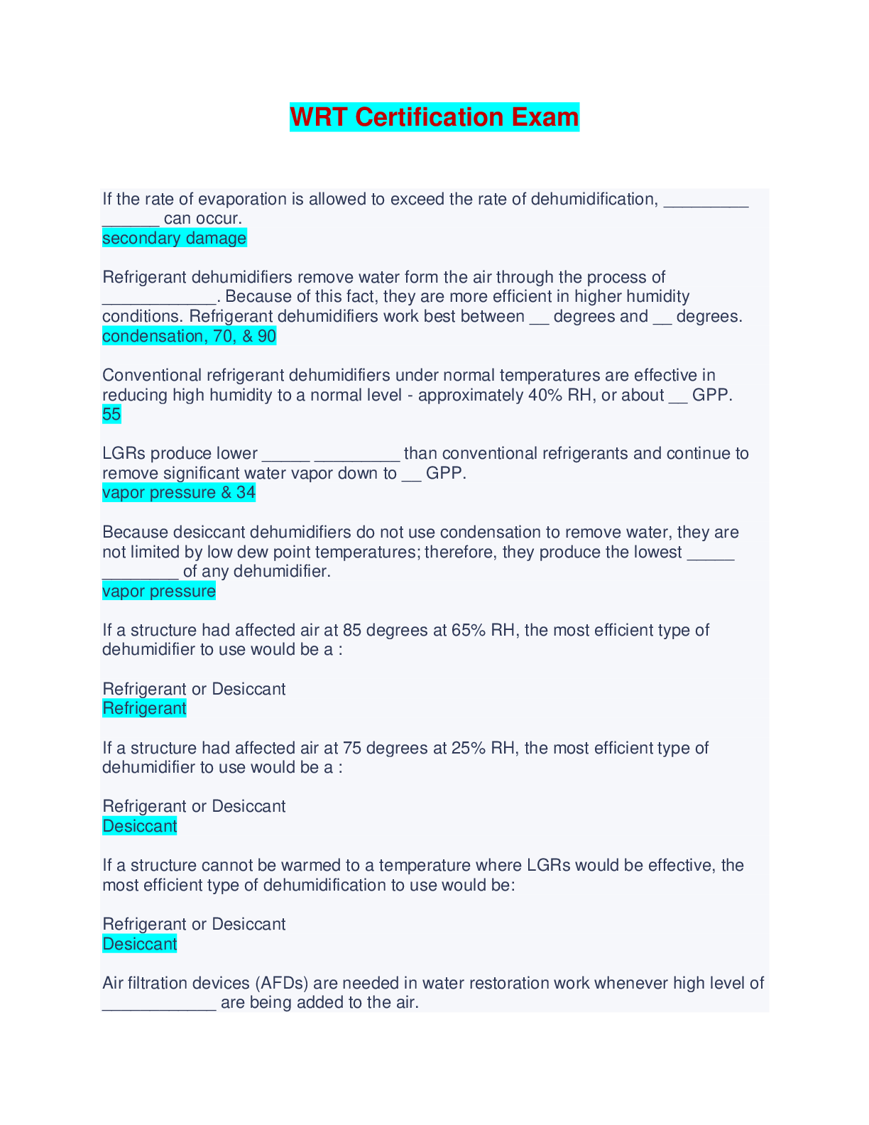 Engineering > EXAM > WRT Certification Exam - Questions and Answers (All)
