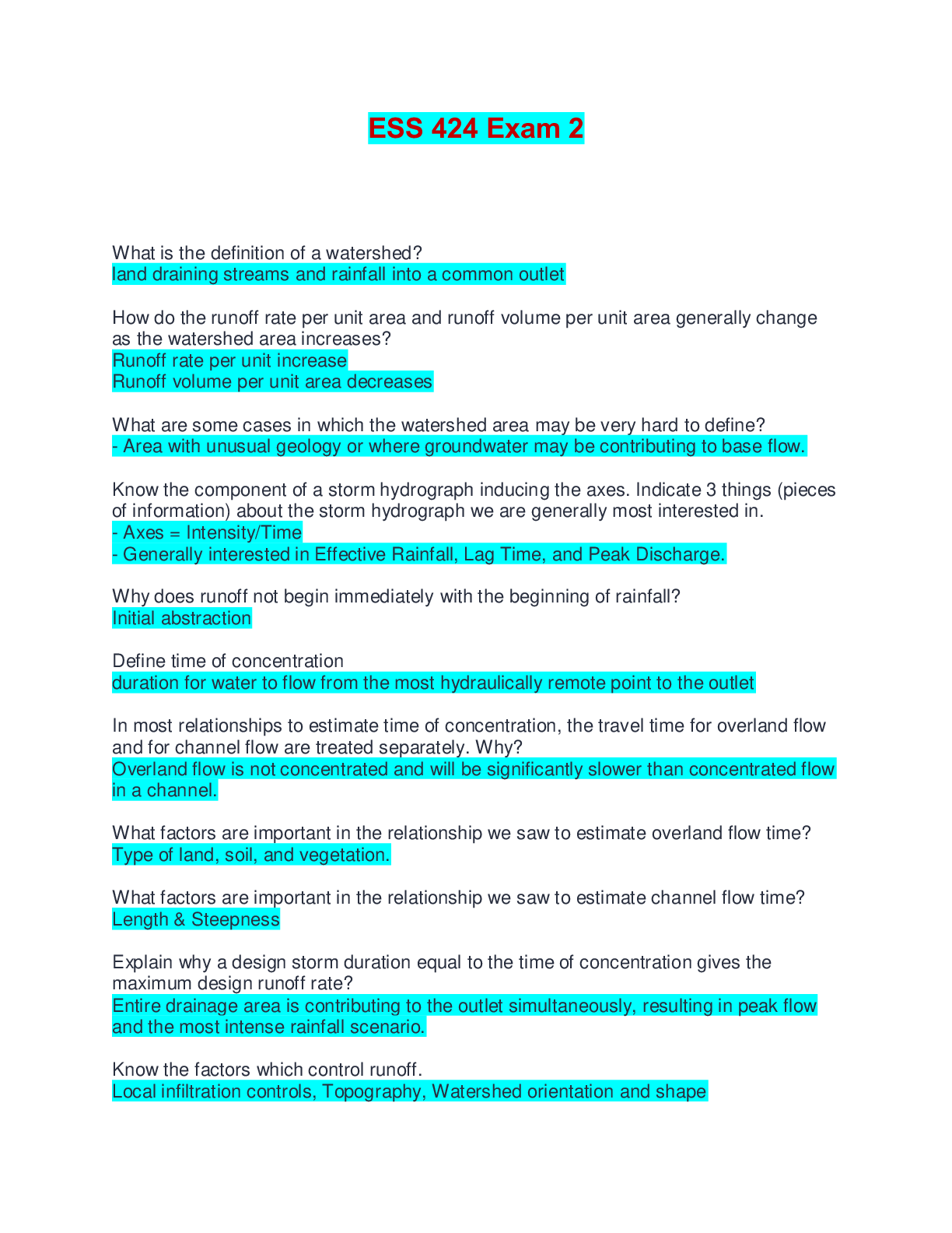 Engineering > EXAM > ESS 424 Exam 2 | Questions with Verified Answers (All)