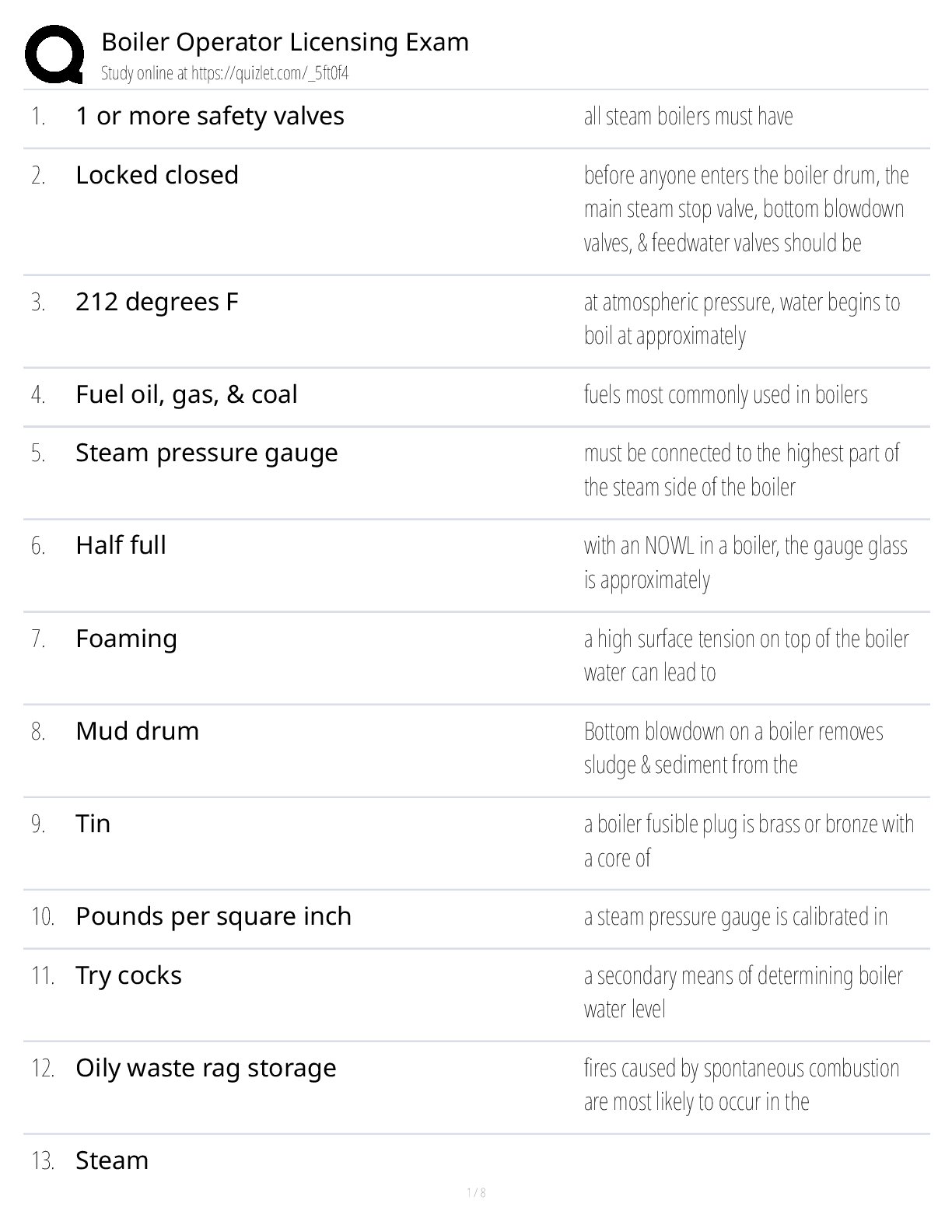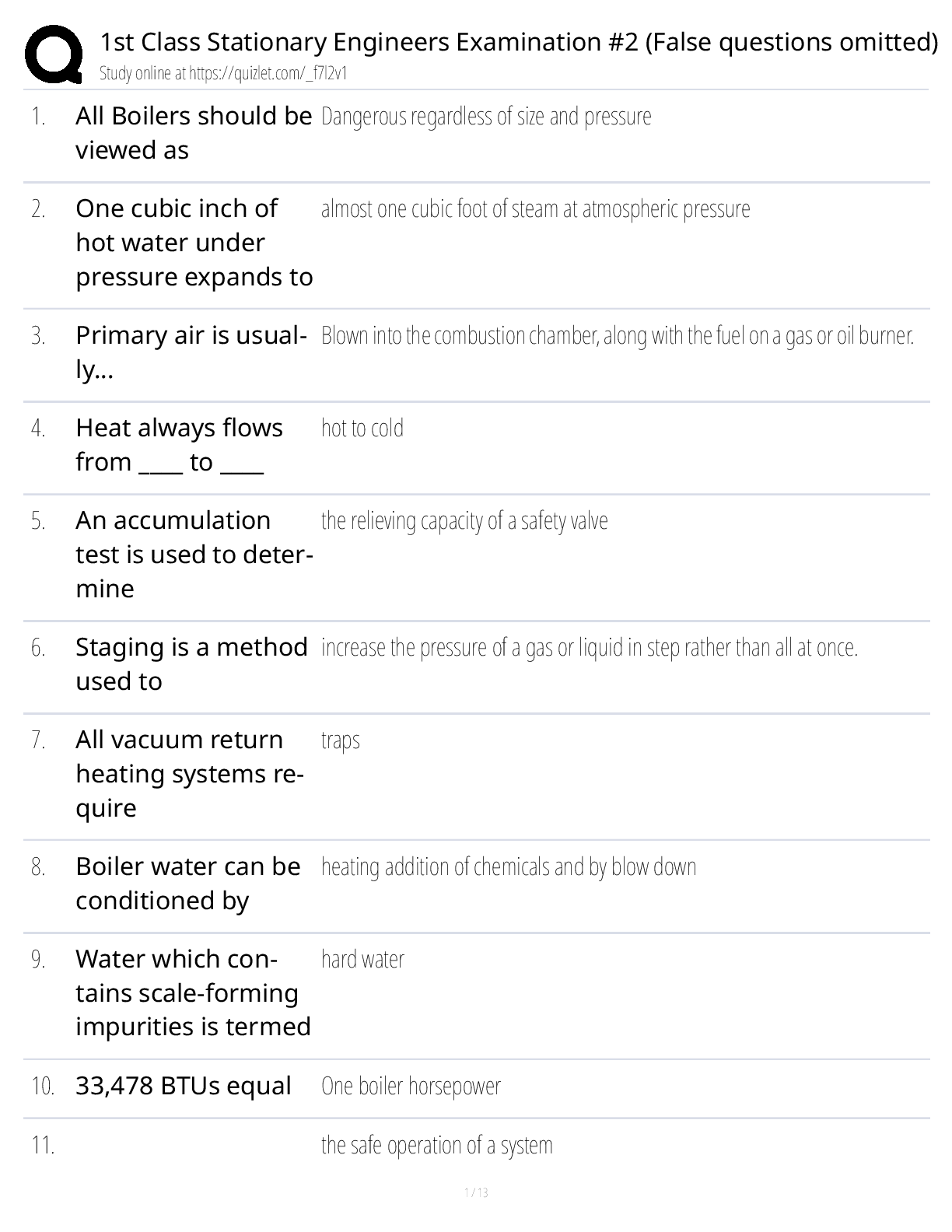 Engineering > EXAM > 1st Class Stationary Engineers Examination #2 – Key Concepts & Review (All)