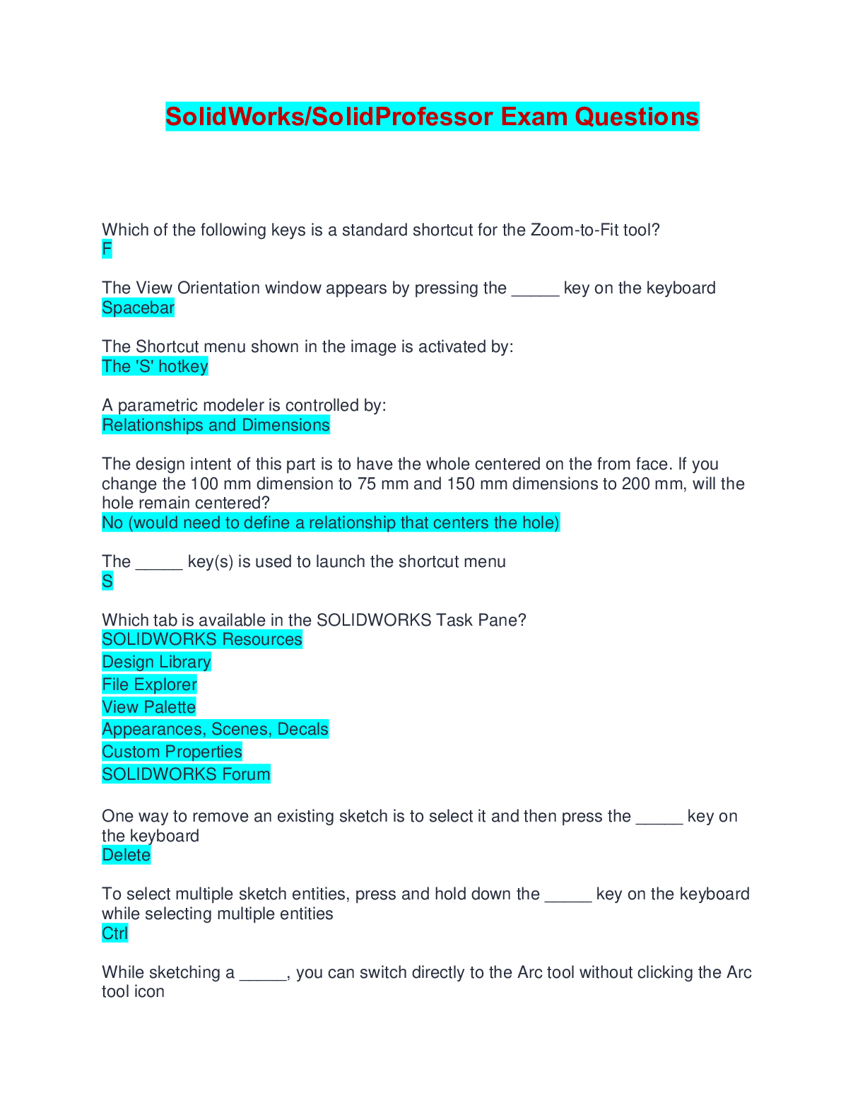 Engineering > EXAM > SolidWorks/SolidProfessor Exam Questions | Answered with complete solutions (All)