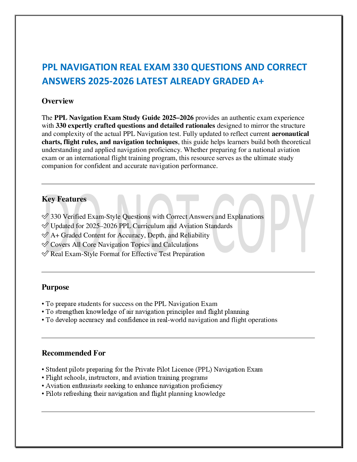 Engineering > EXAM > PPL NAVIGATION REAL EXAM 330 QUESTIONS AND CORRECT ANSWERS 2025-2026 LATEST ALREADY GRADED A+ (All)
