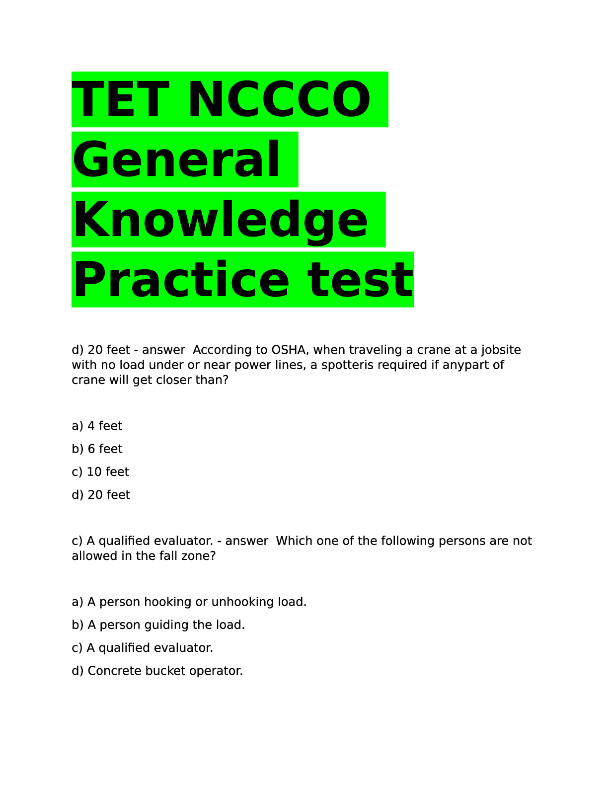 Engineering > EXAM > TET NCCCO General Knowledge Practice Test. (All)