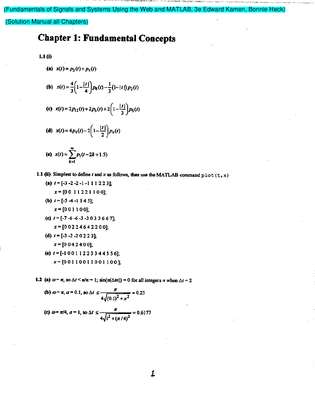 Engineering > SOLUTIONS MANUAL > Fundamentals of Signals and Systems Using the Web and MATLAB, 3e Edward Kamen, Bonnie Heck (Solution Manual) (All)